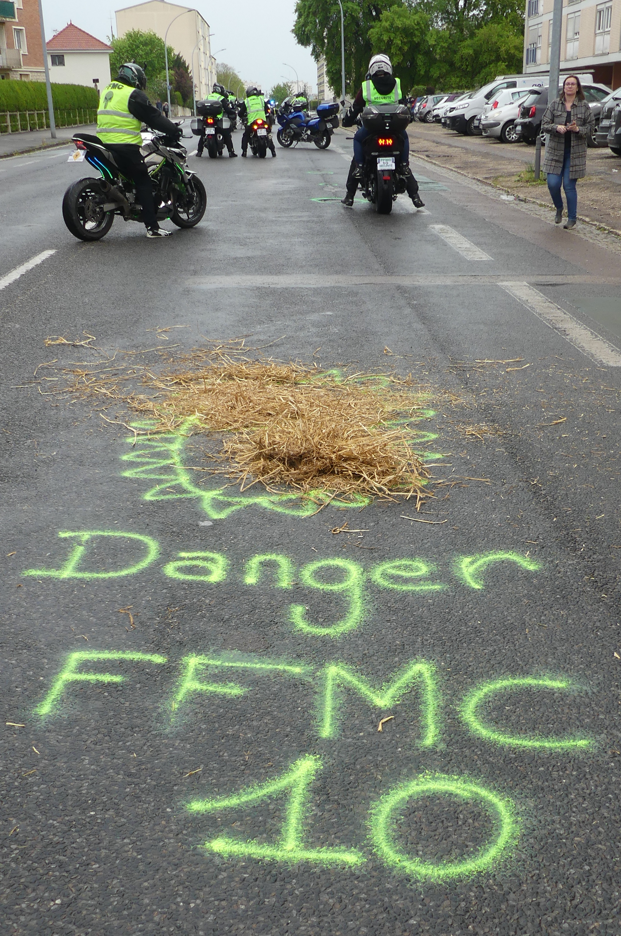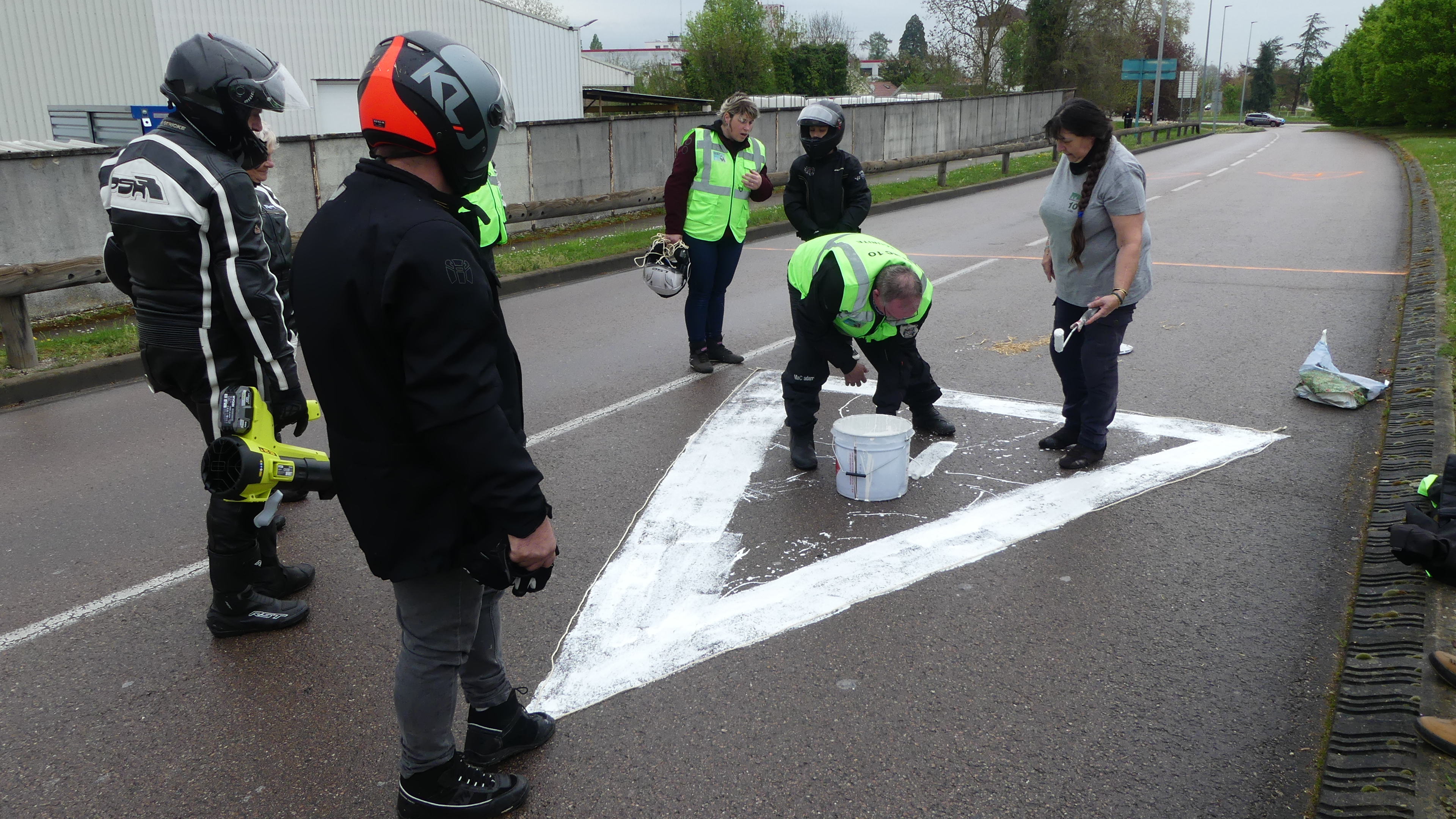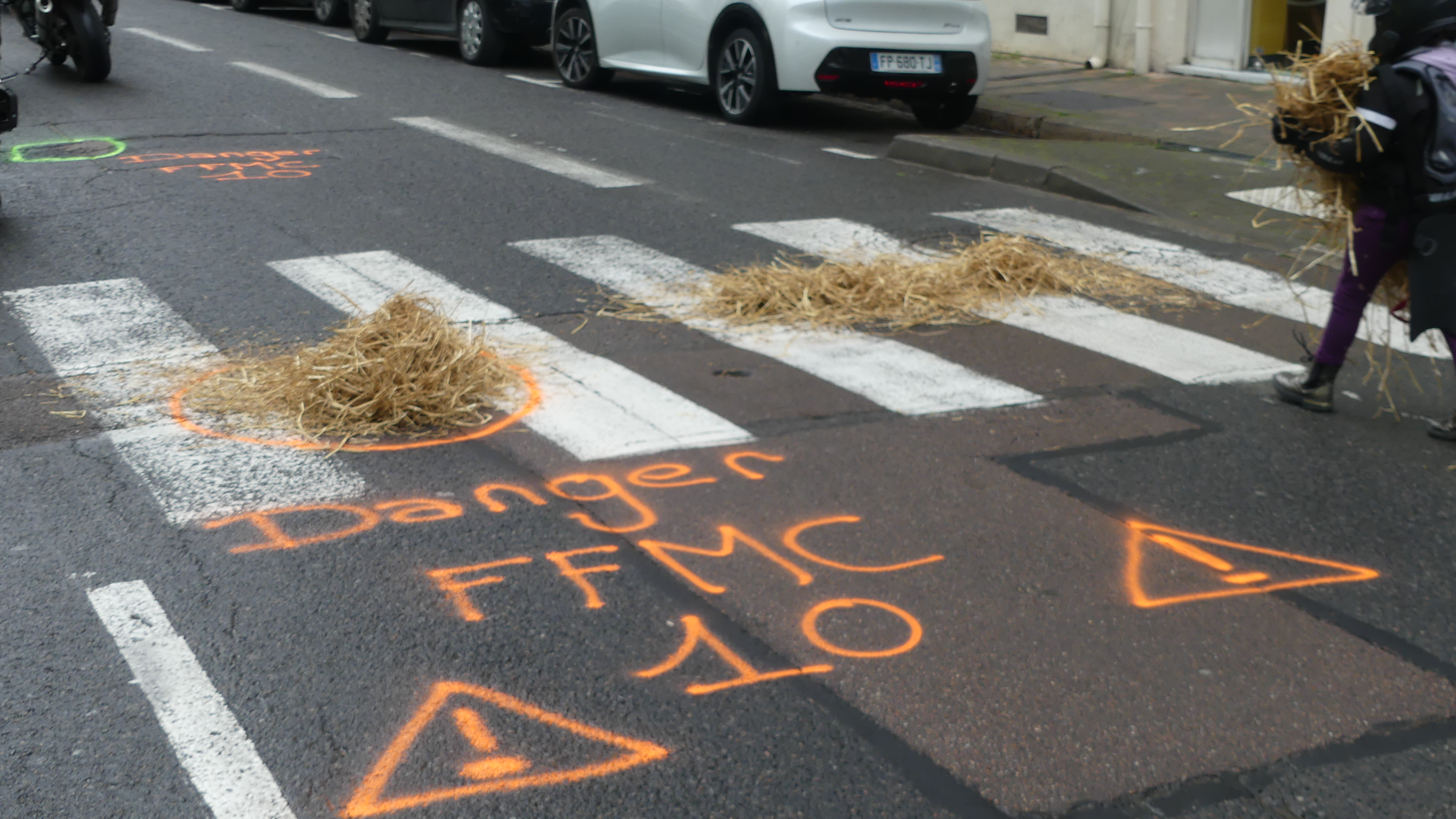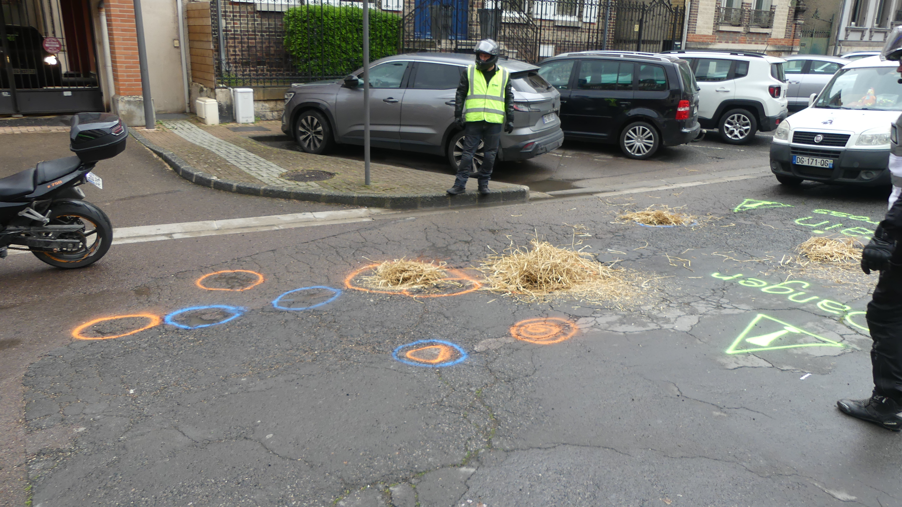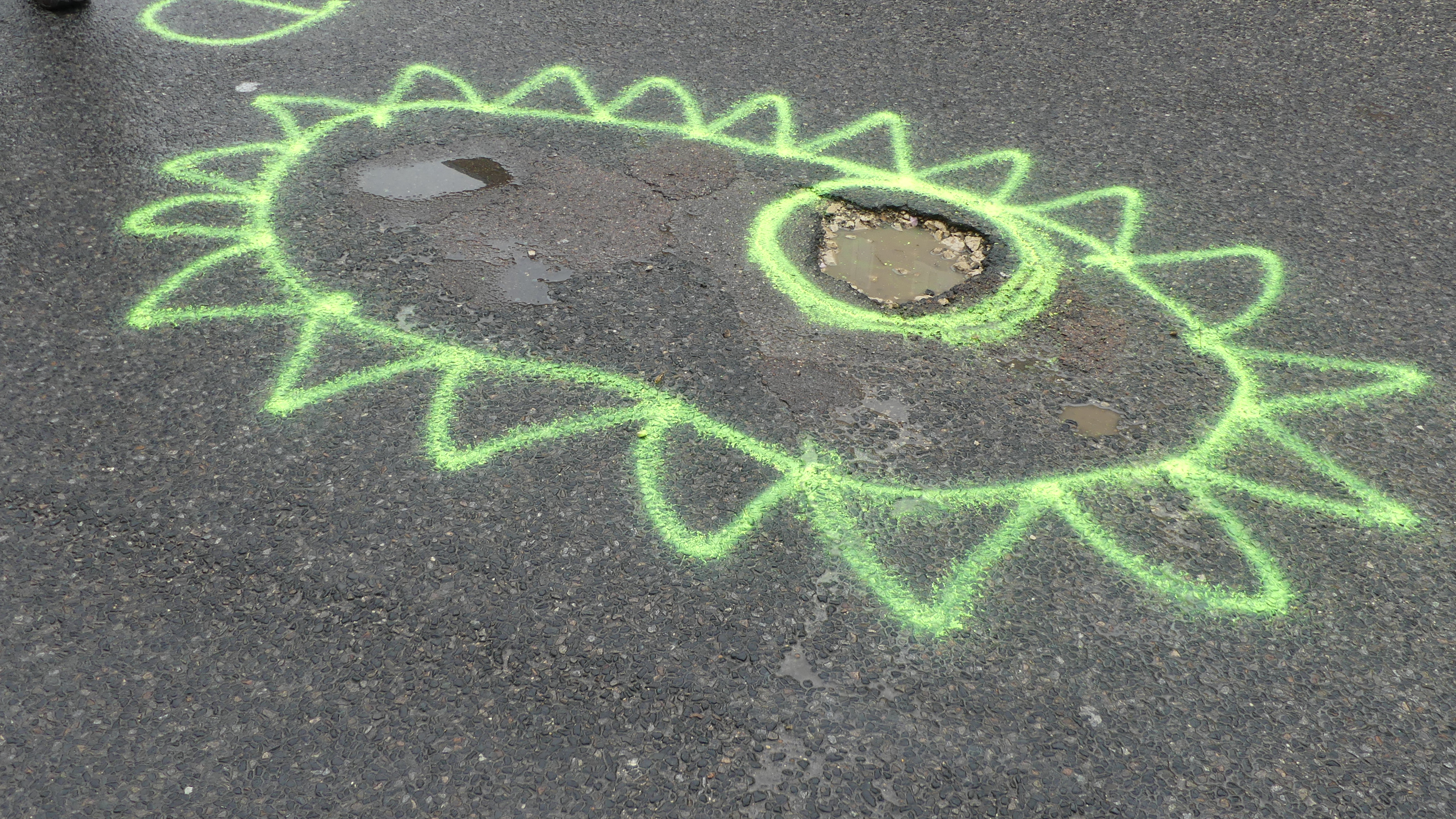 Manifestation contre les nids de poules avec marquage au sol