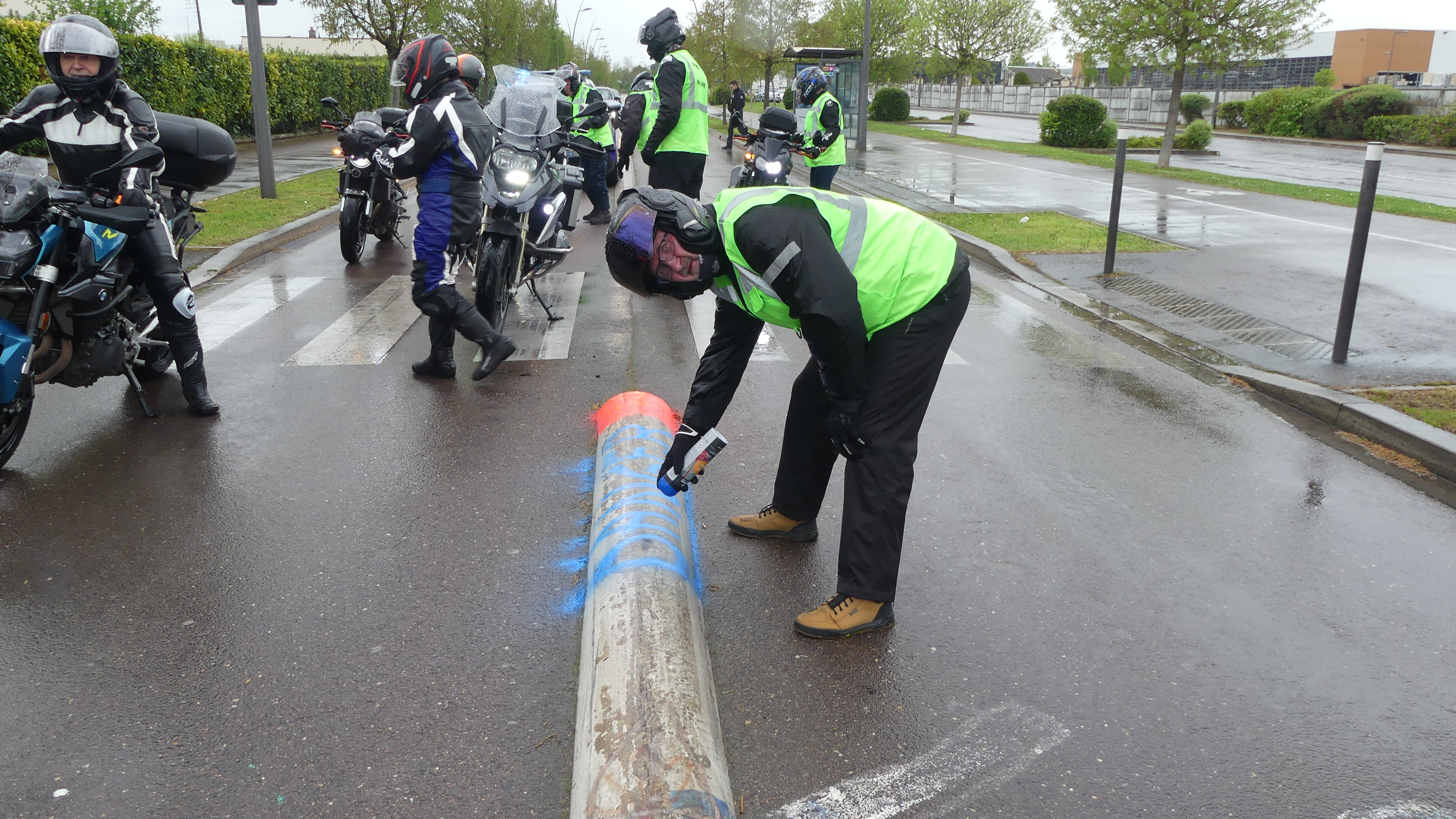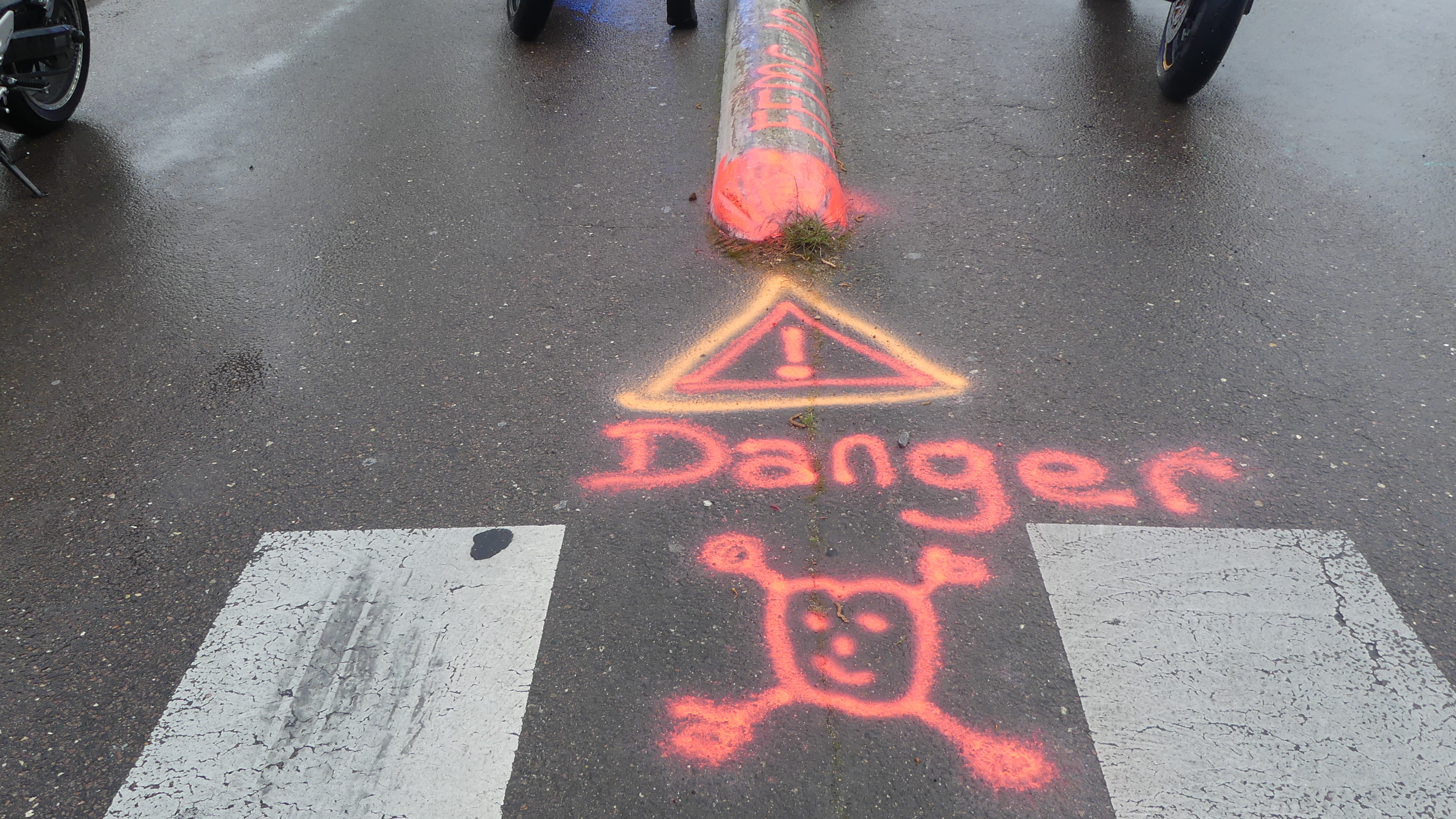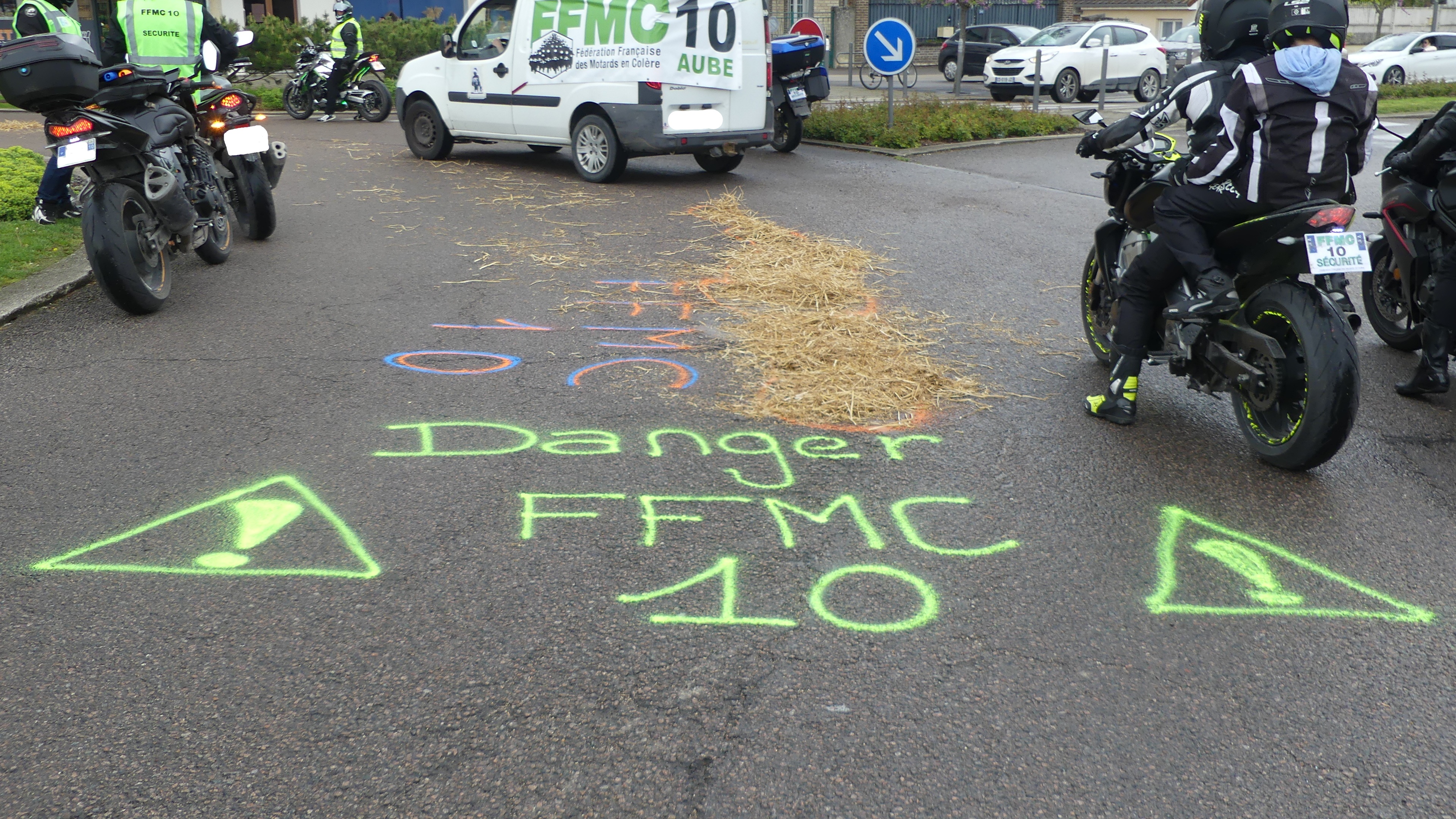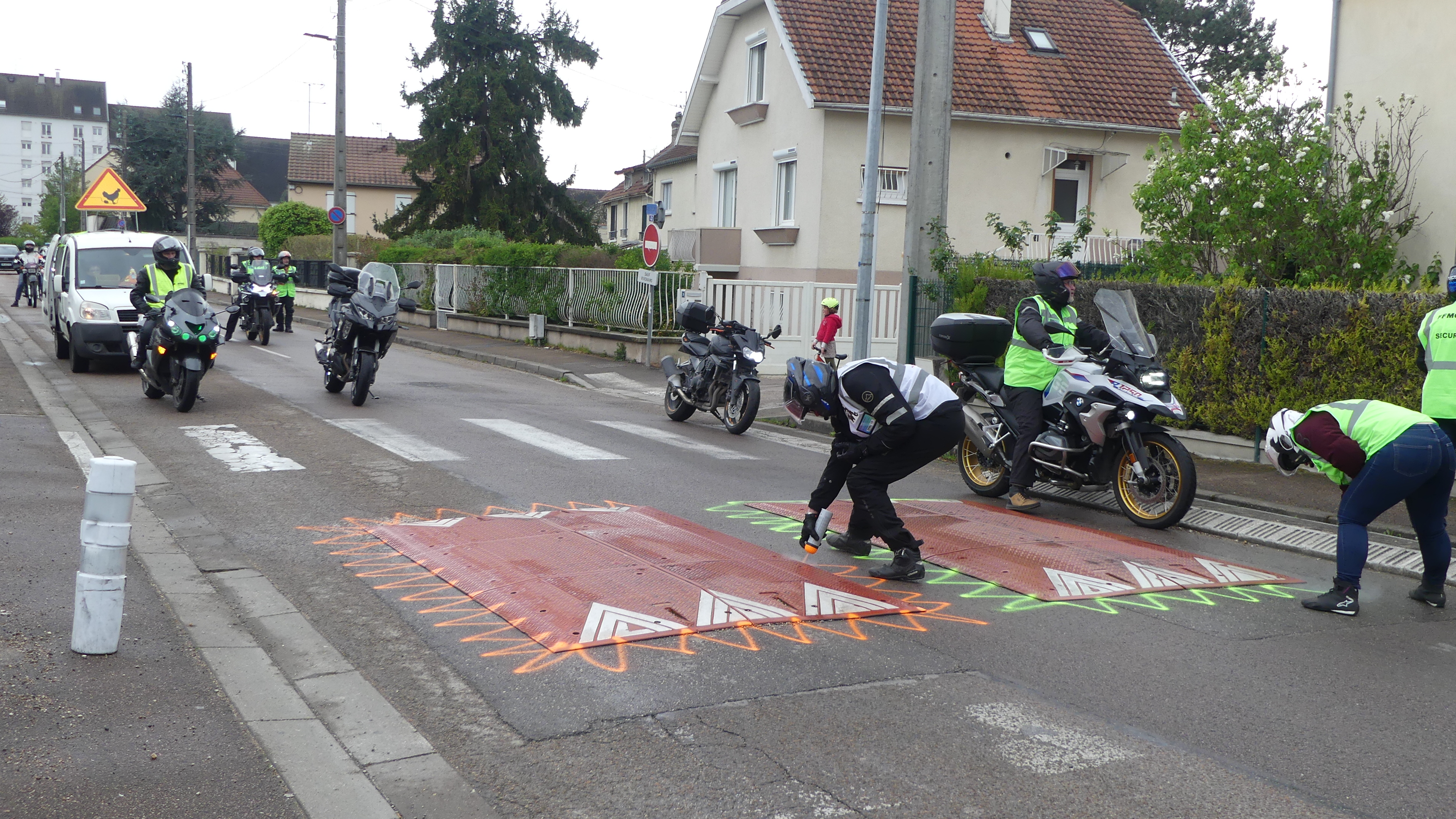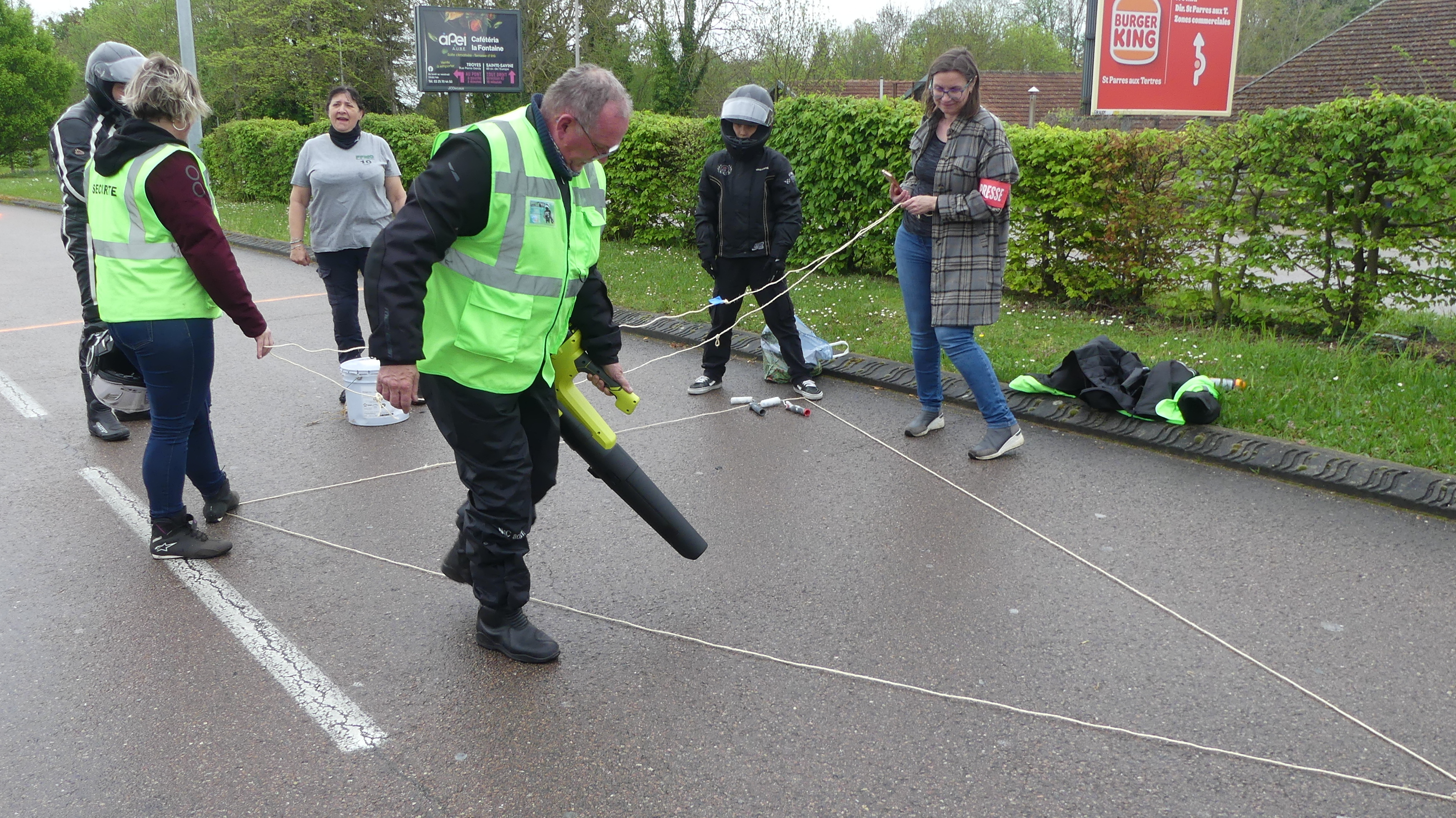 Manifestation contre les nids de poules avec marquage au sol