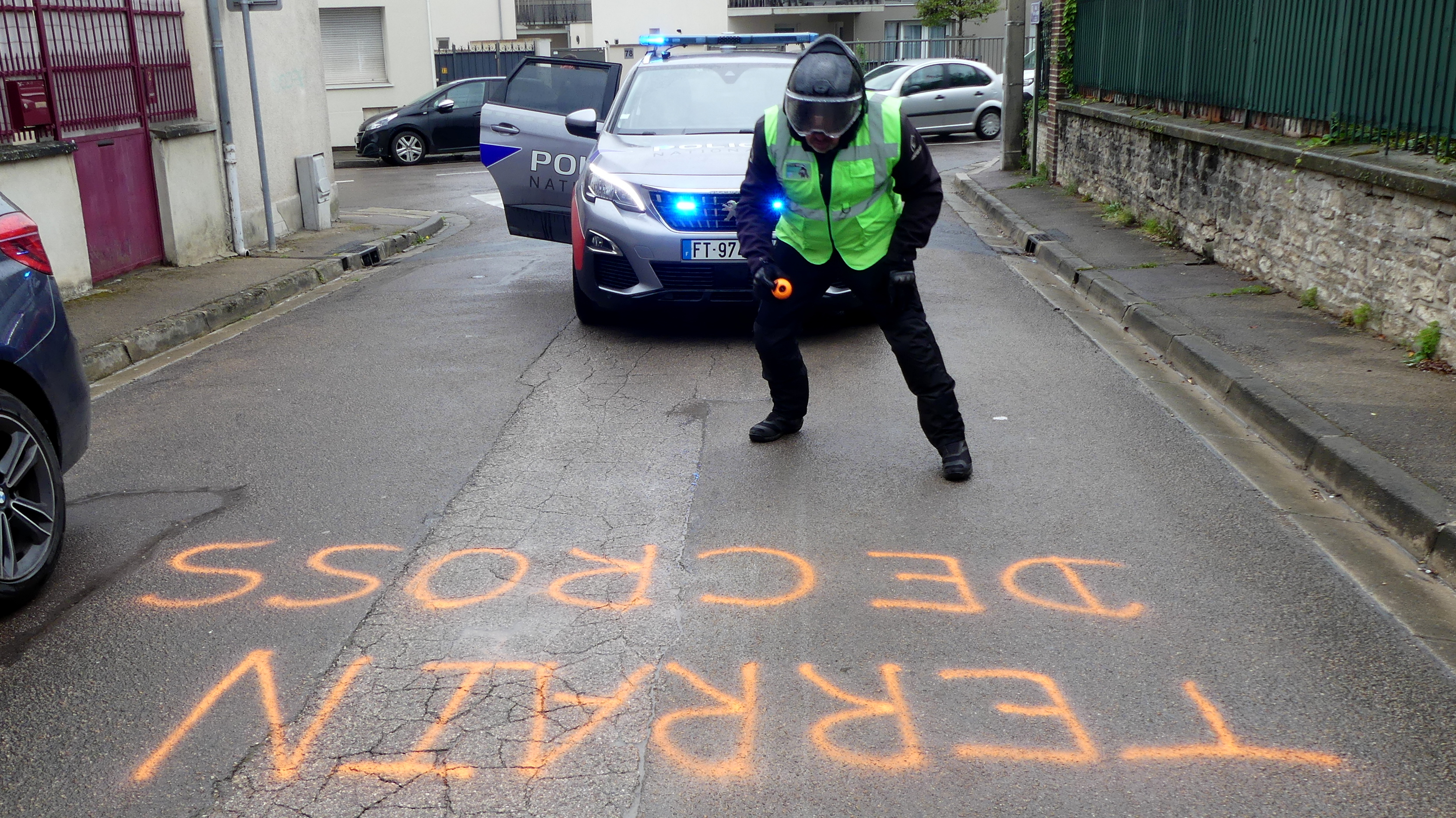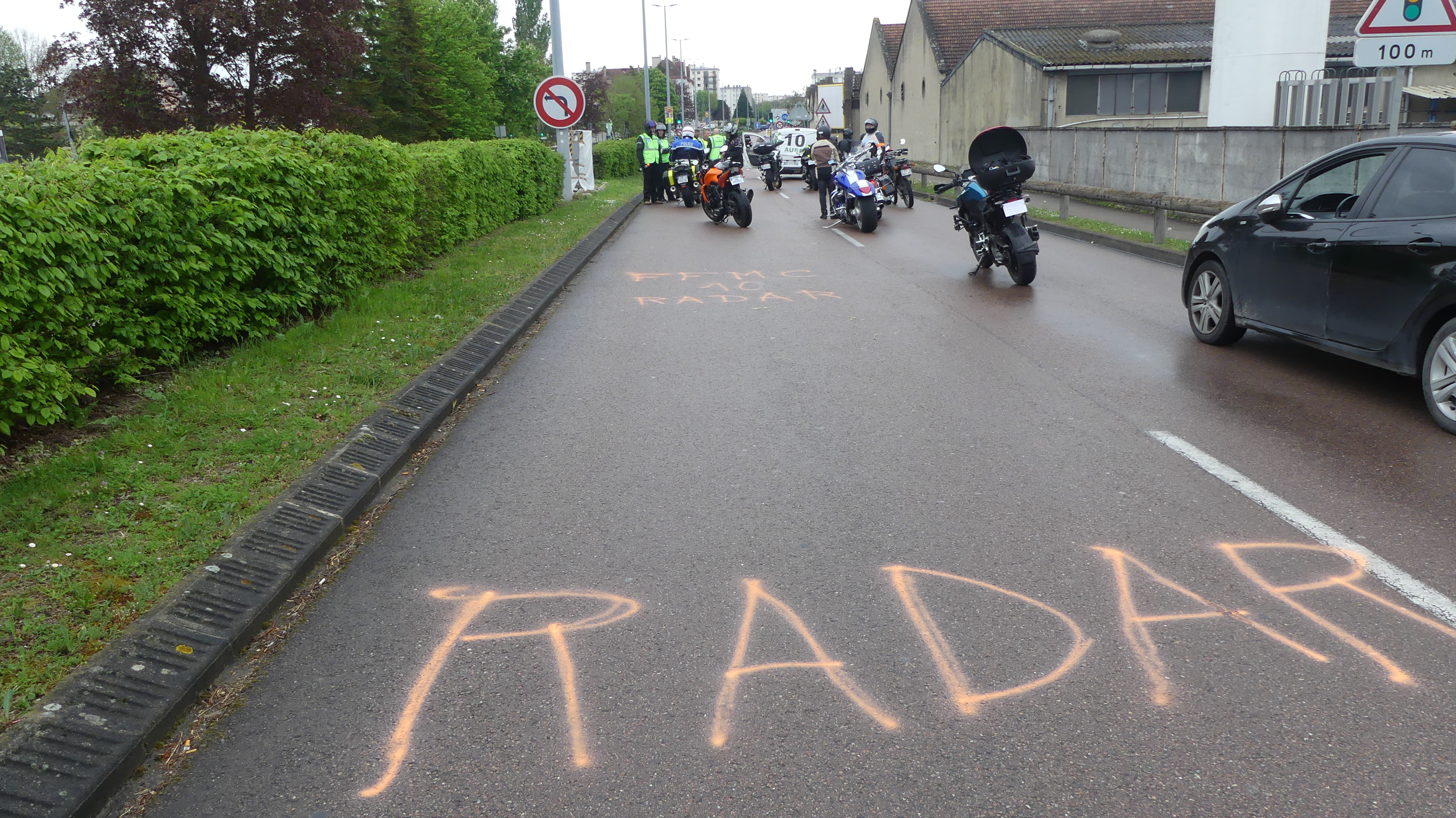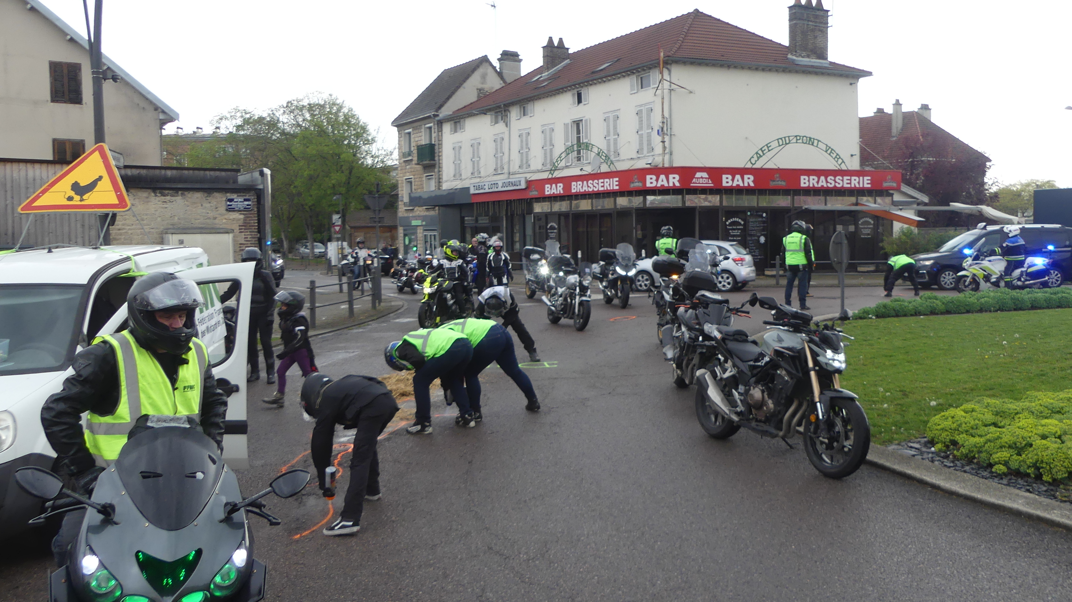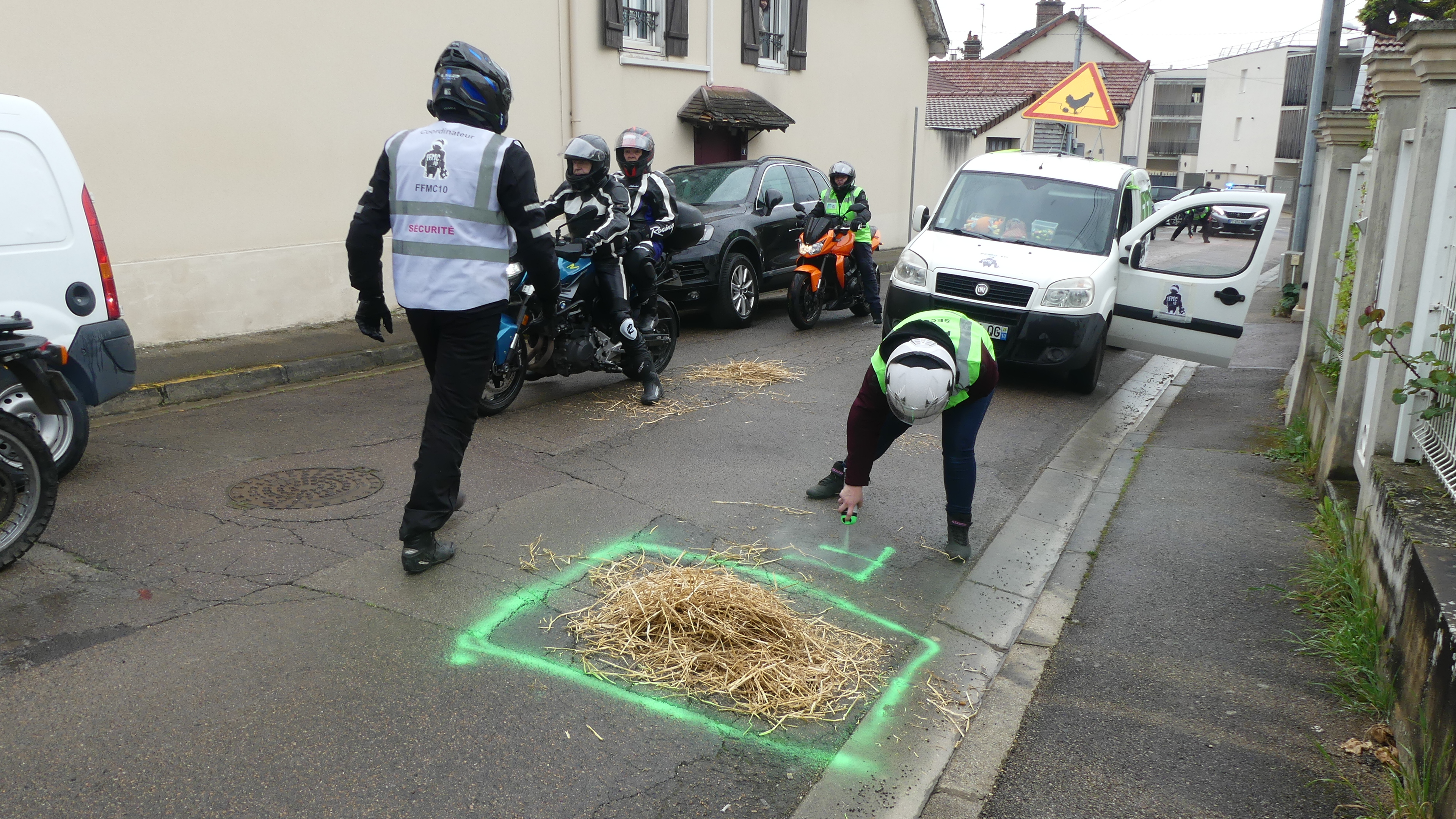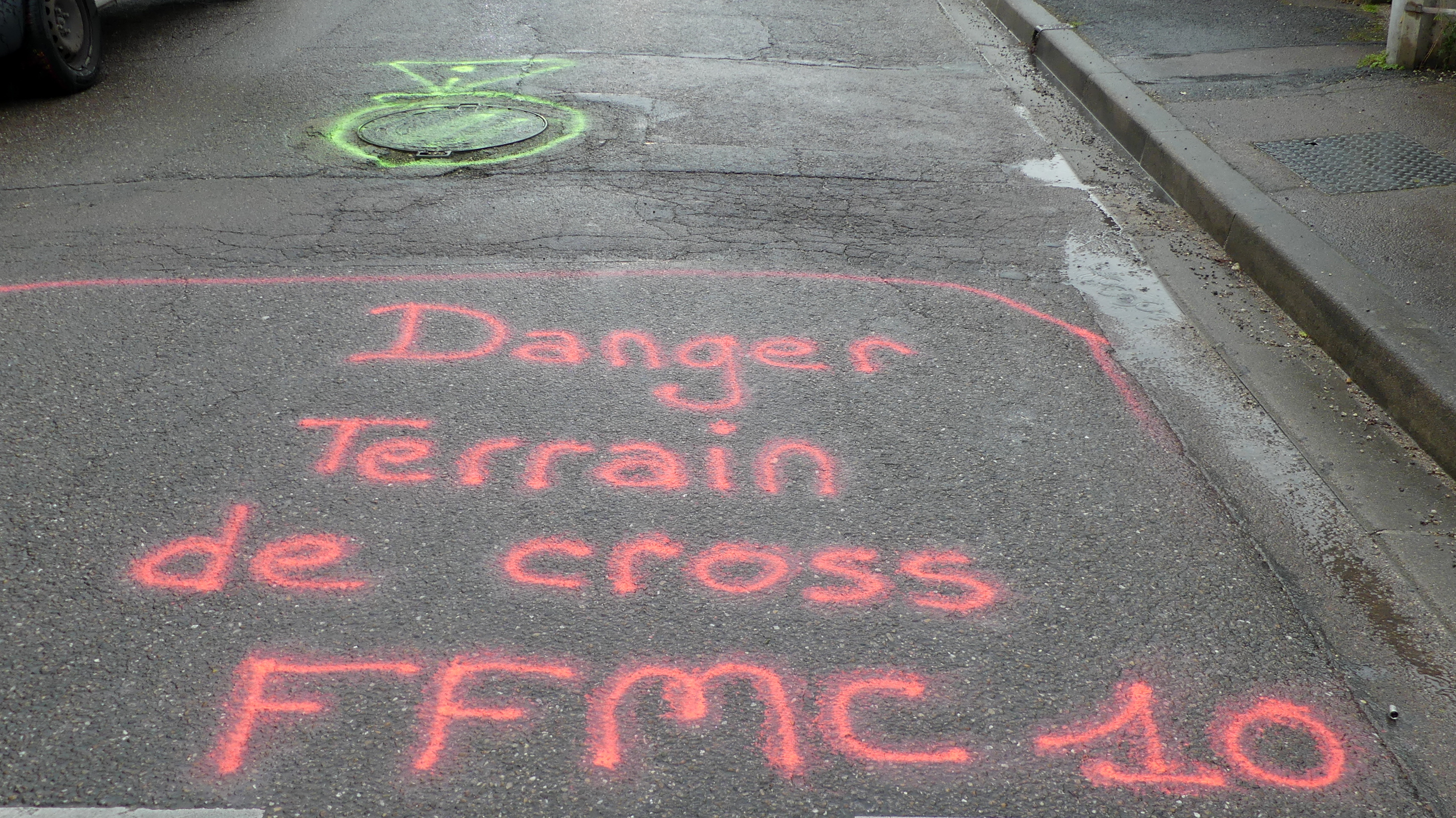 Manifestation contre les nids de poules avec marquage au sol