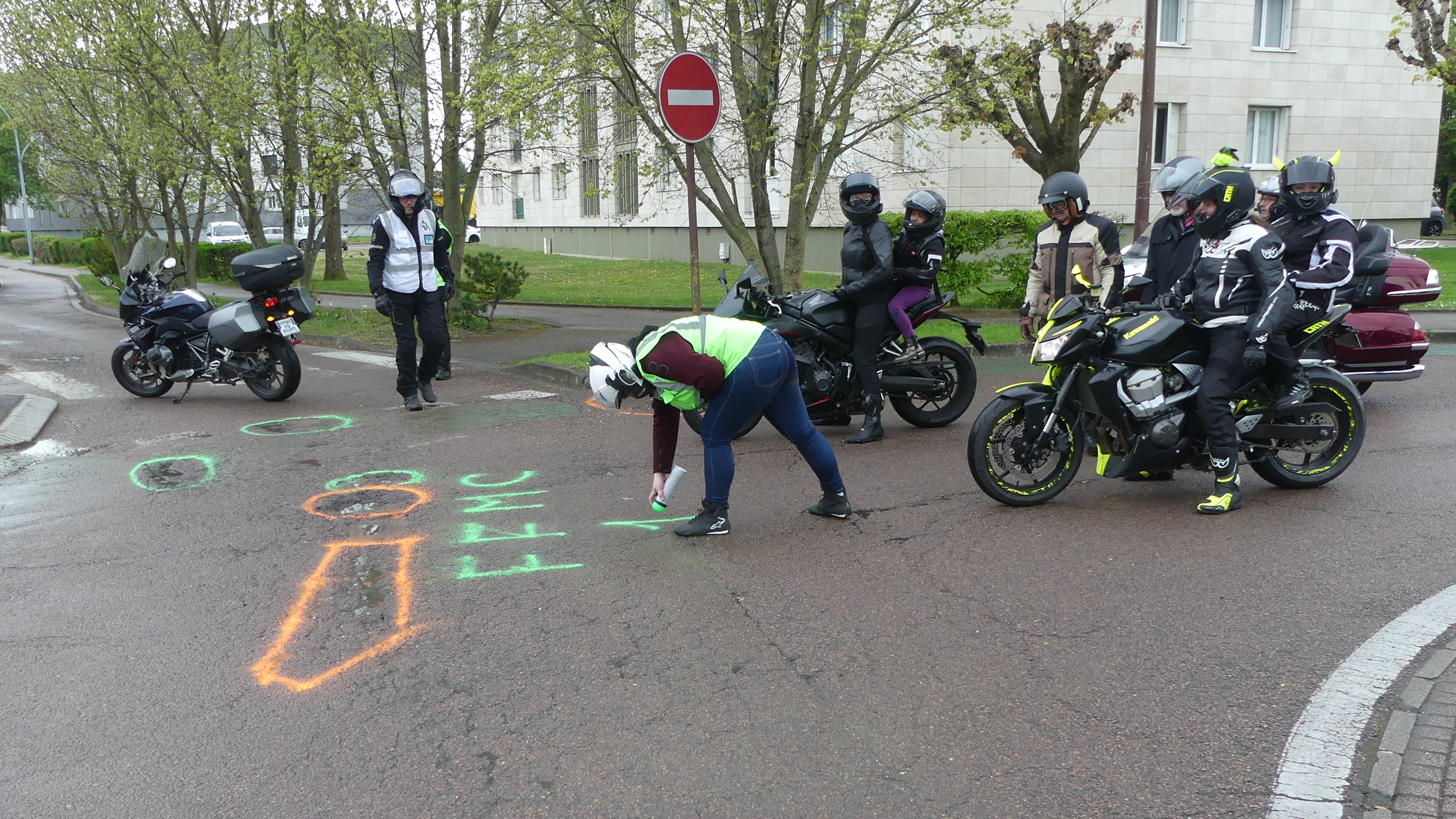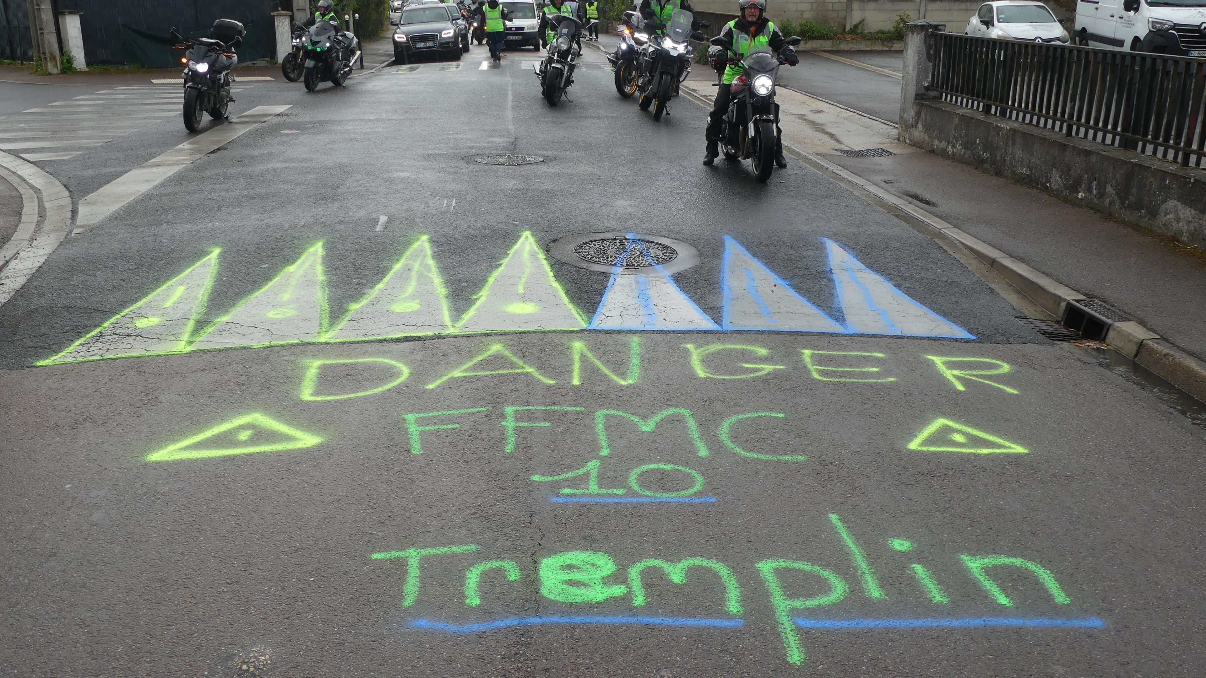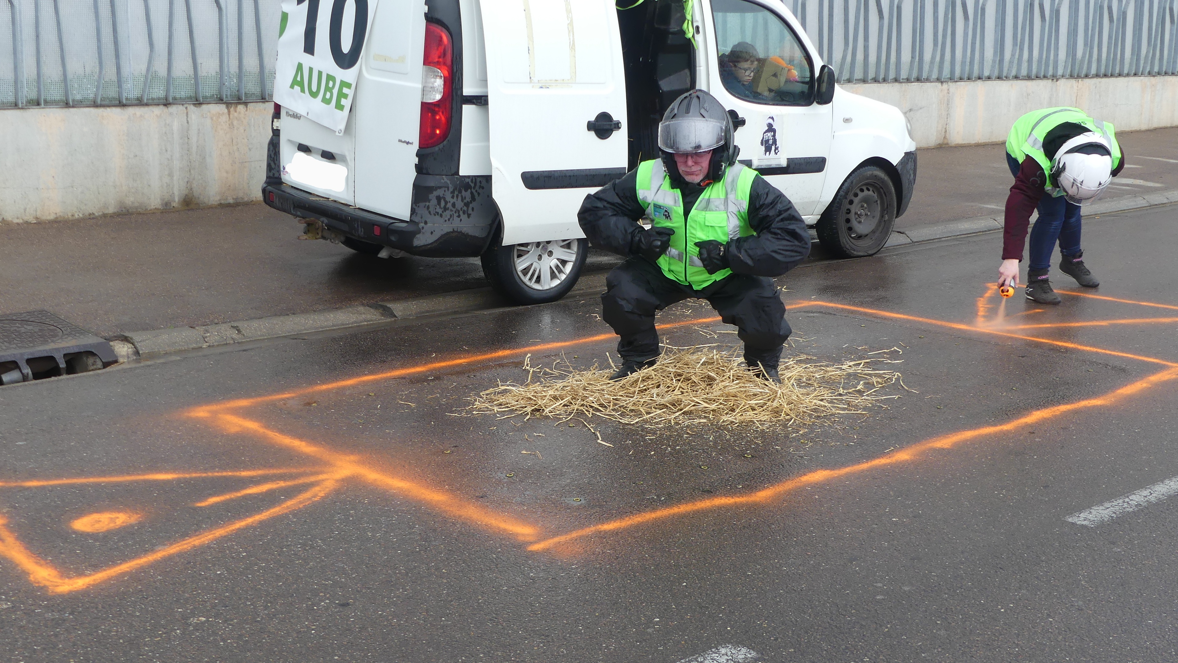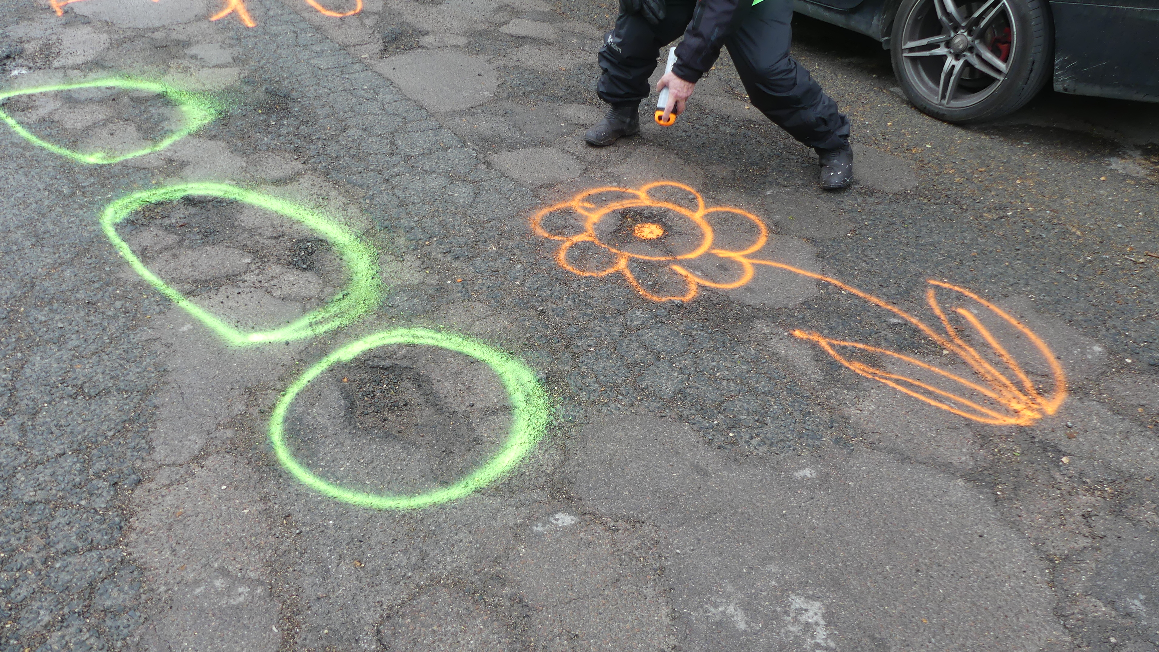 Manifestation contre les nids de poules avec marquage au sol