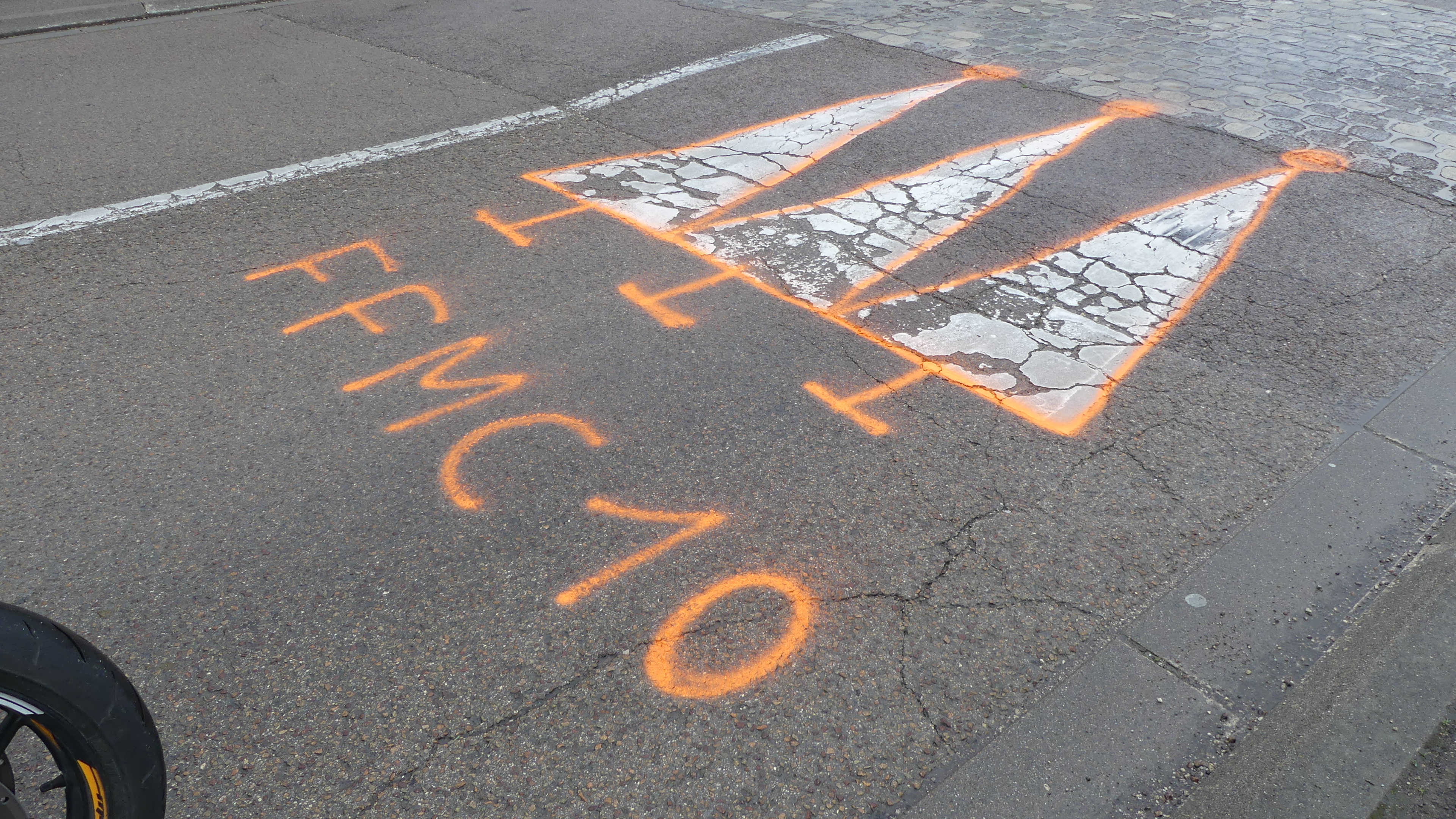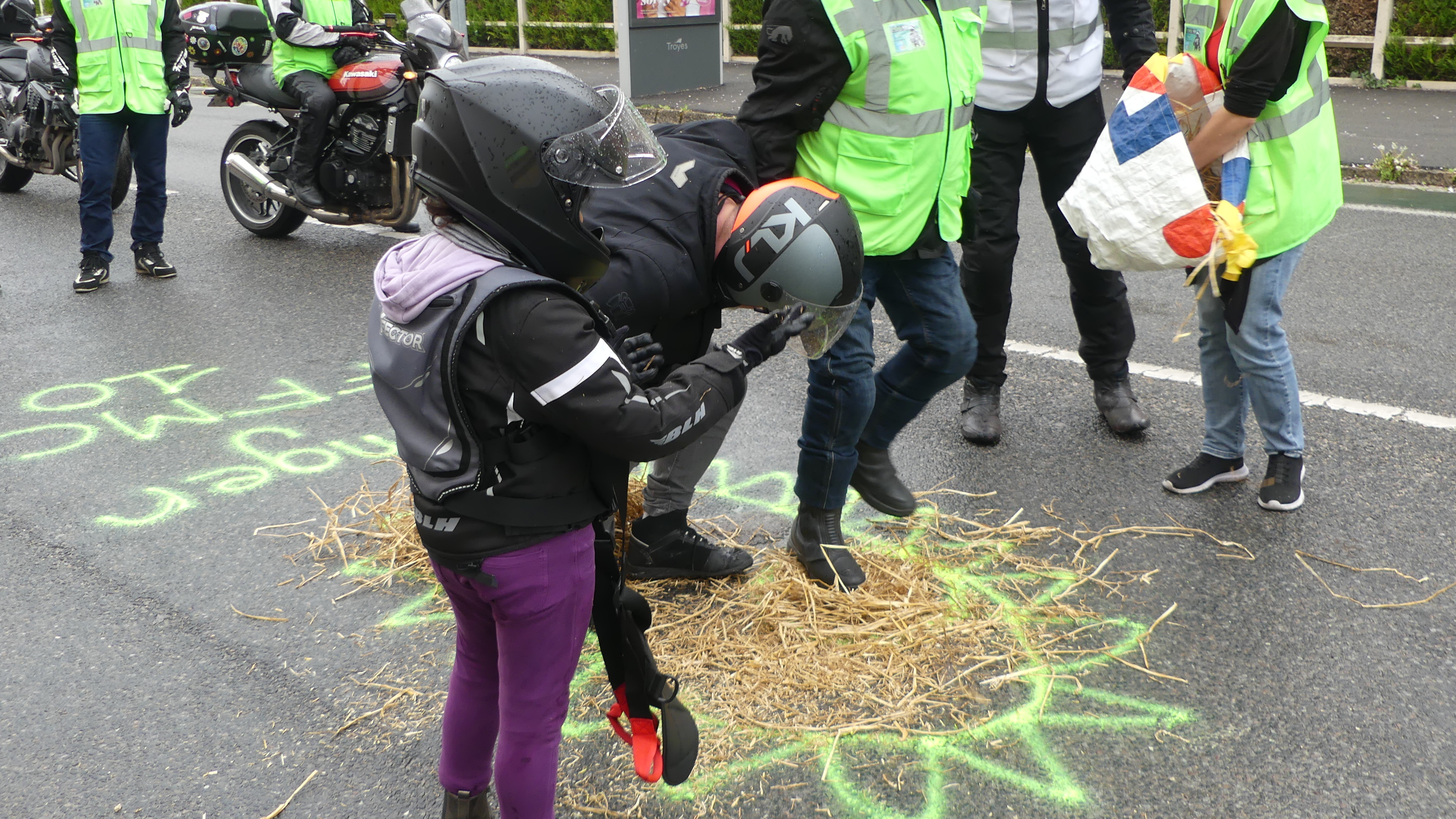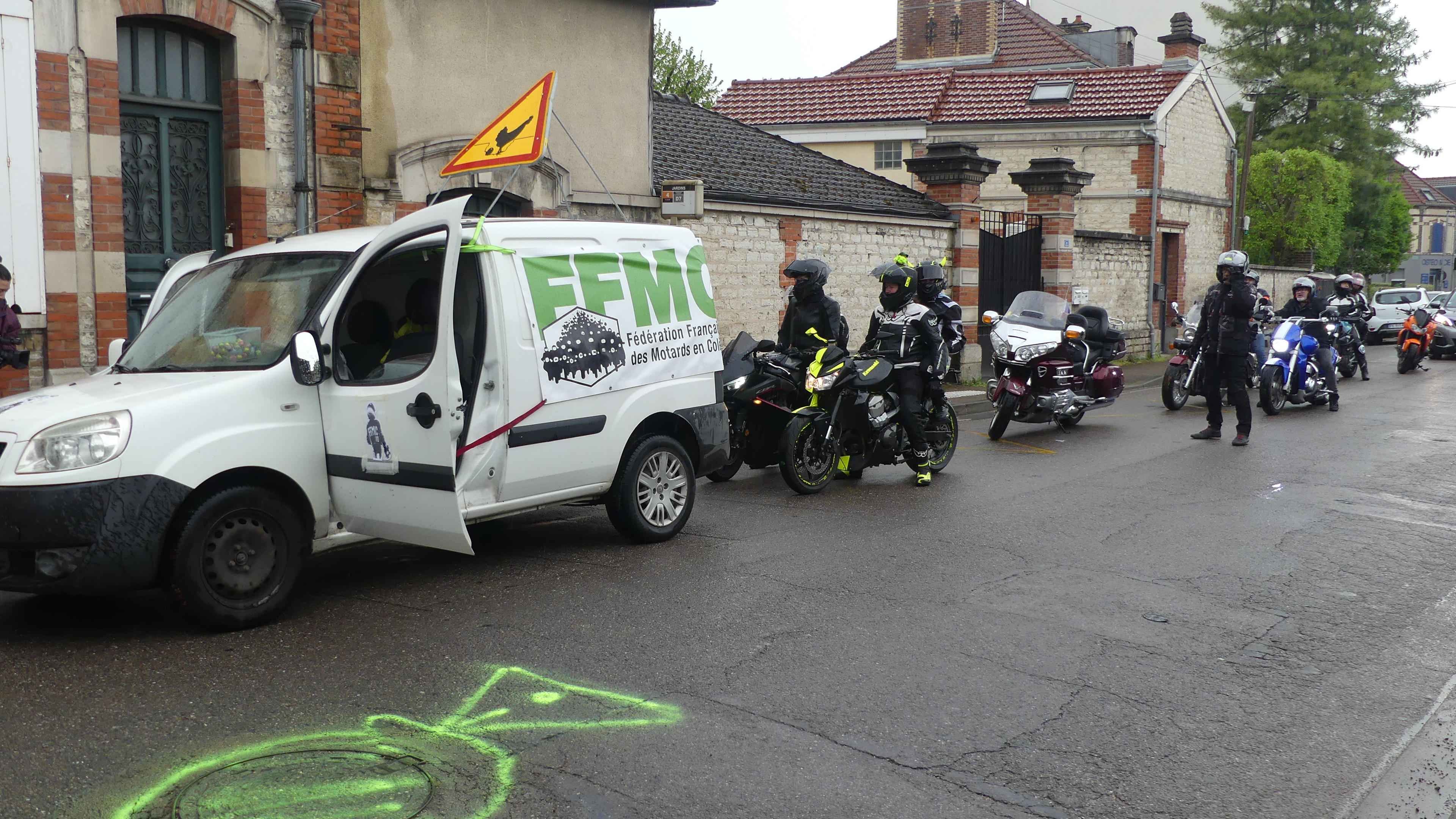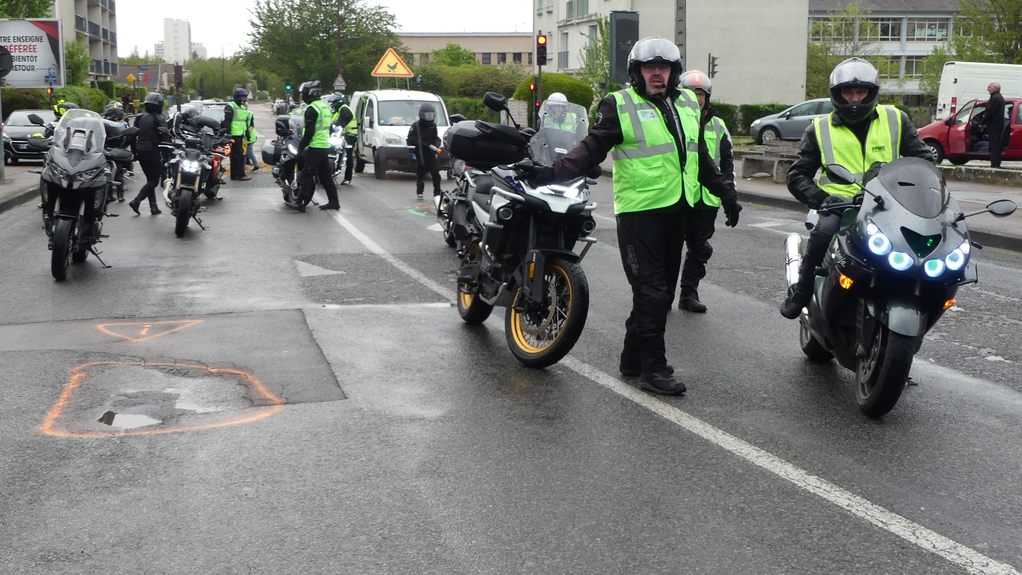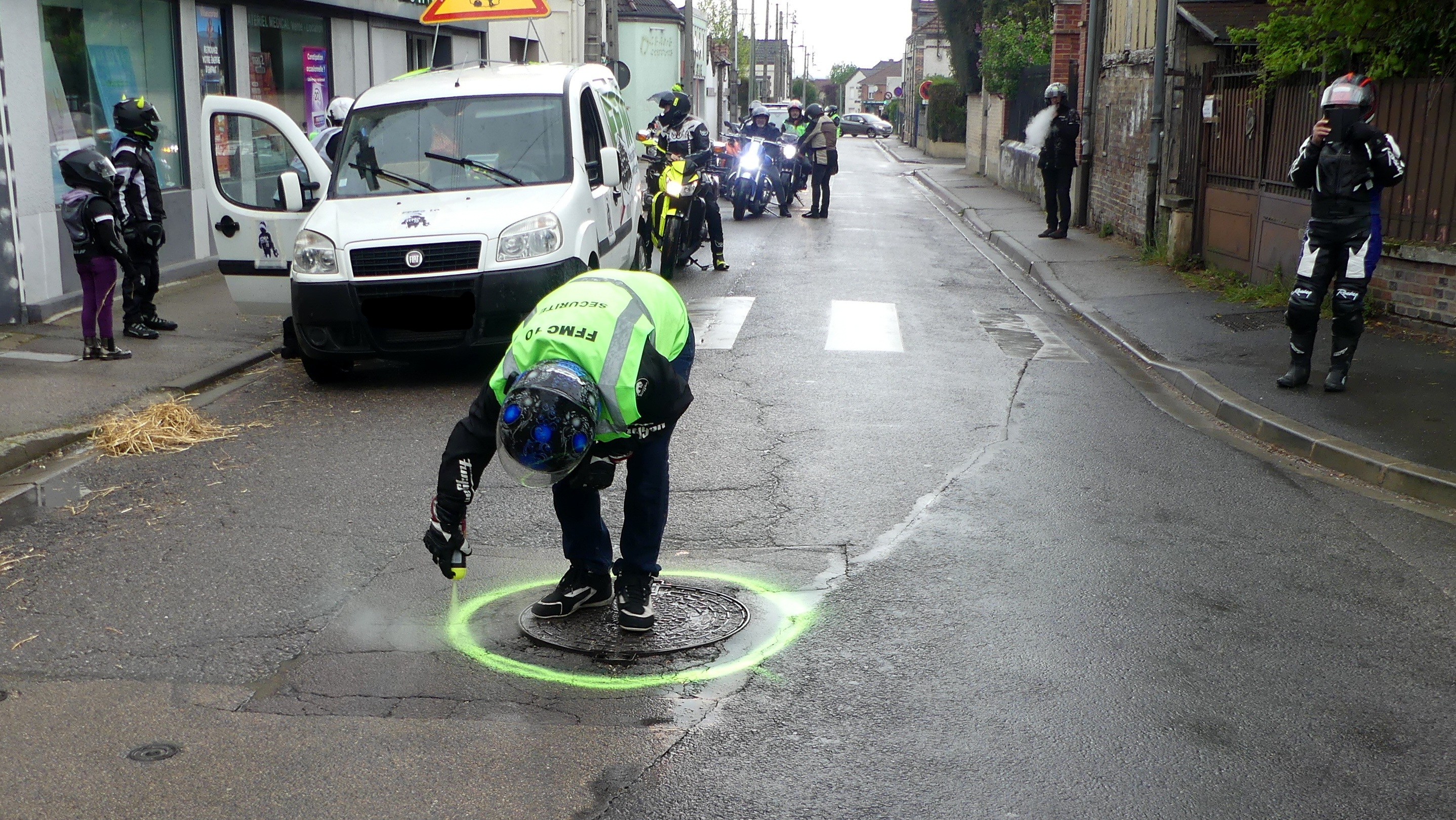 Manifestation contre les nids de poules avec marquage au sol