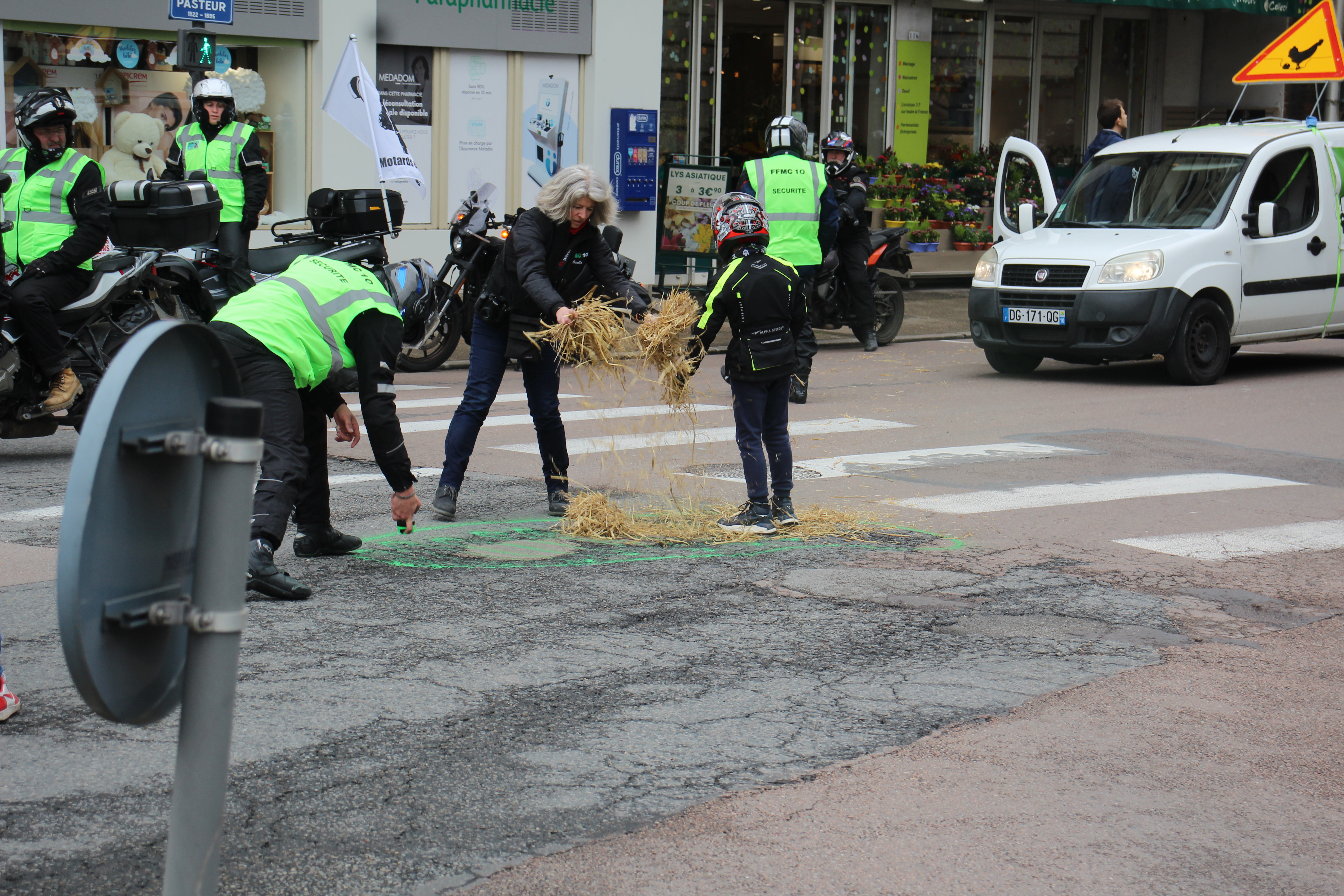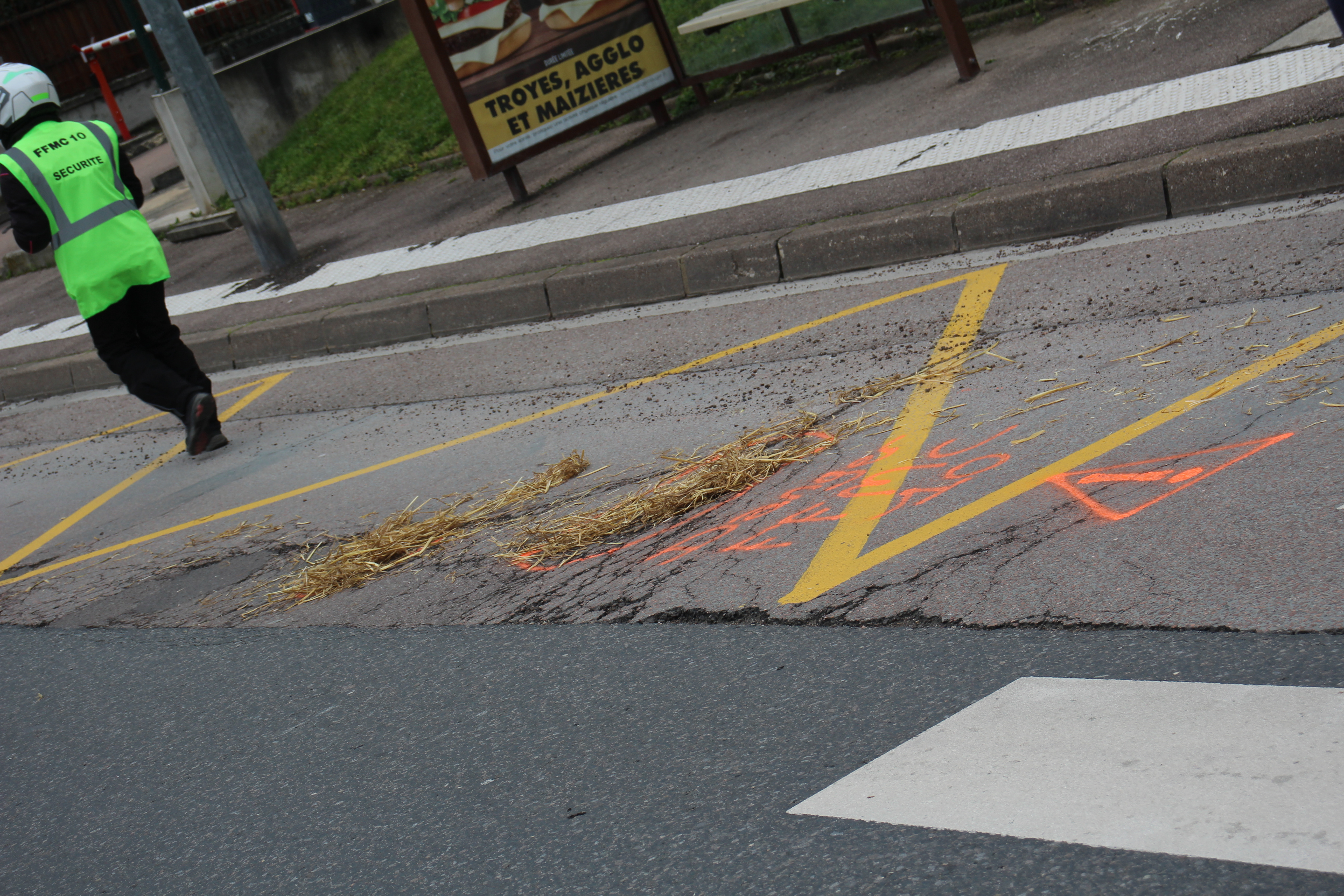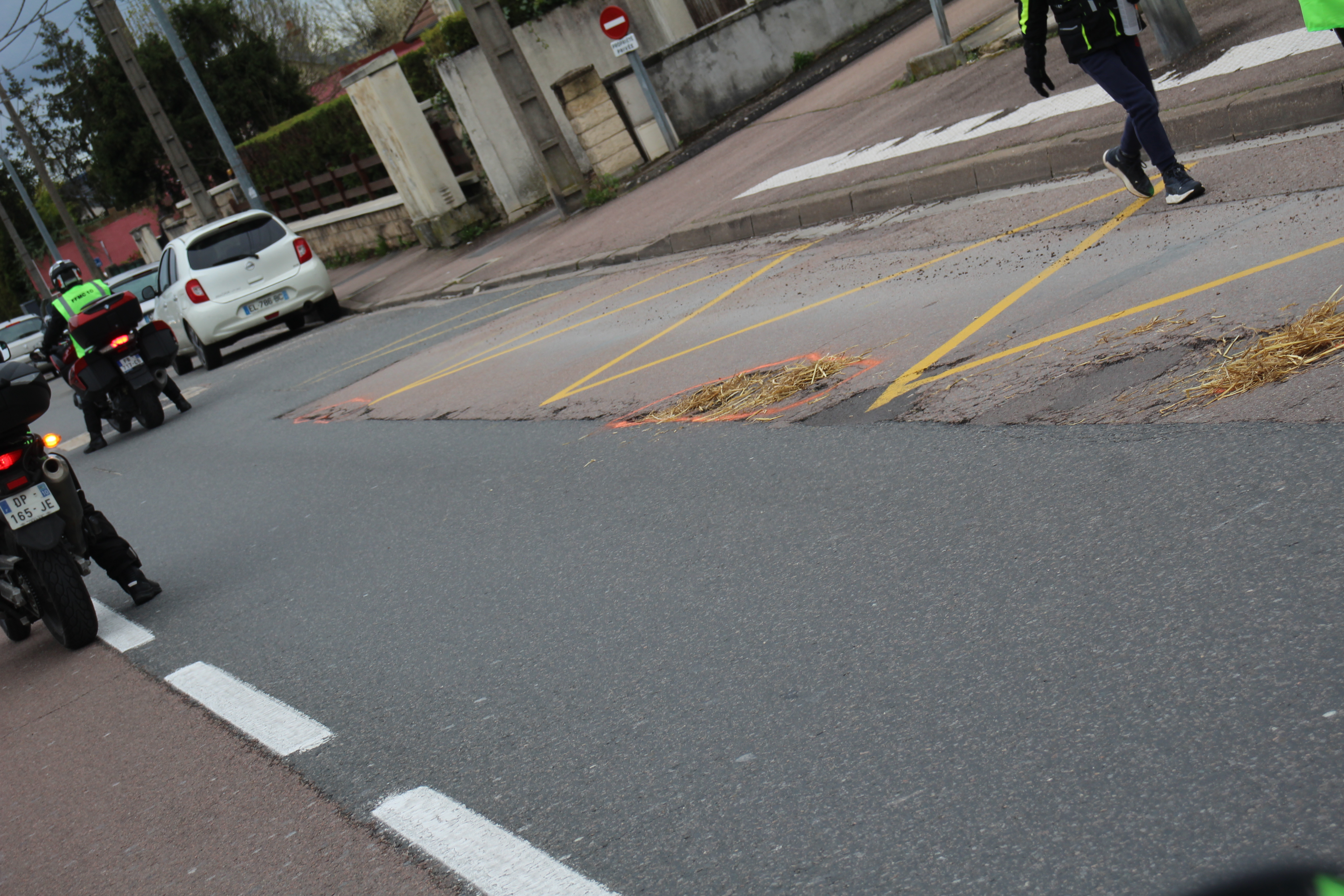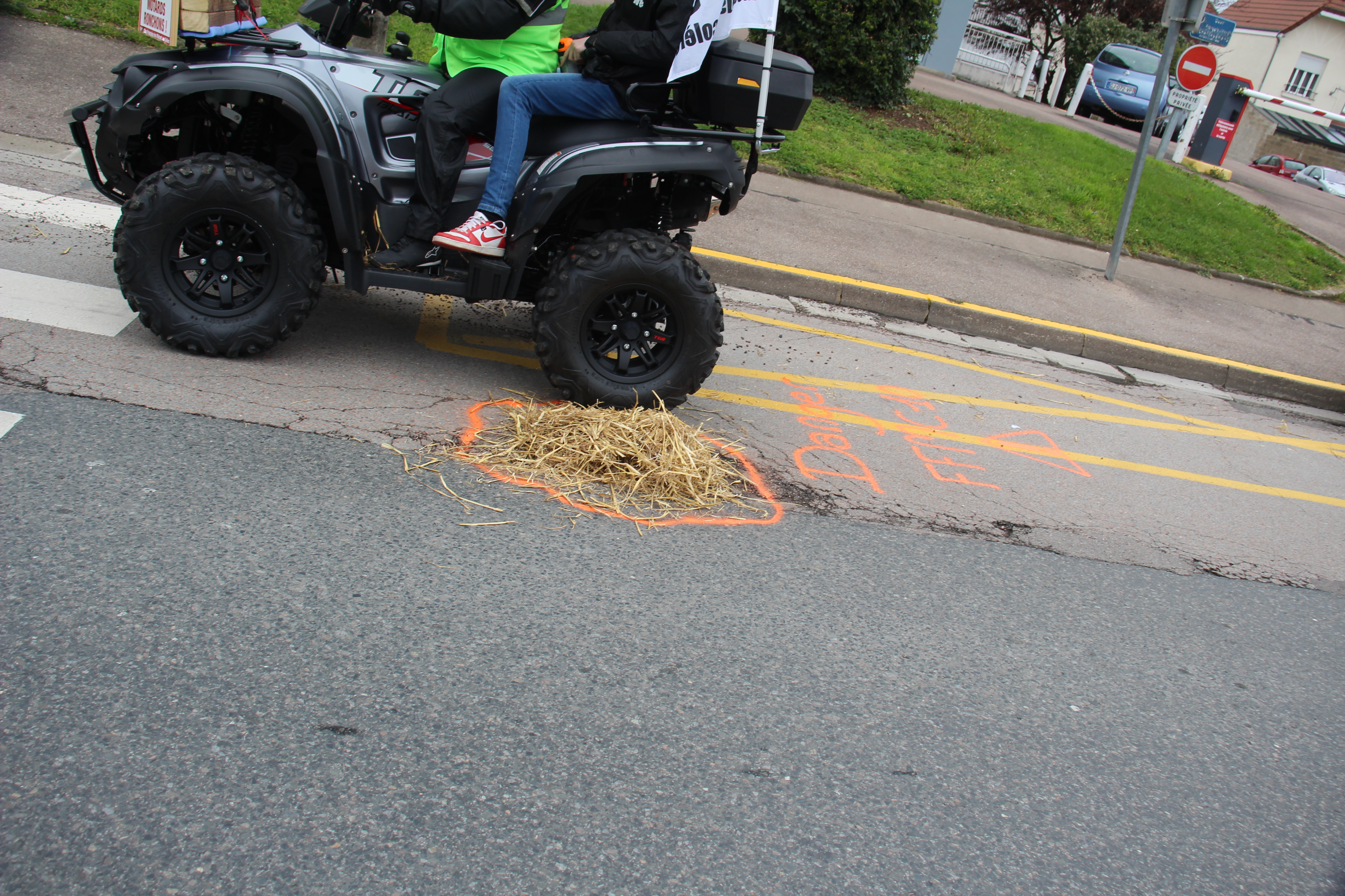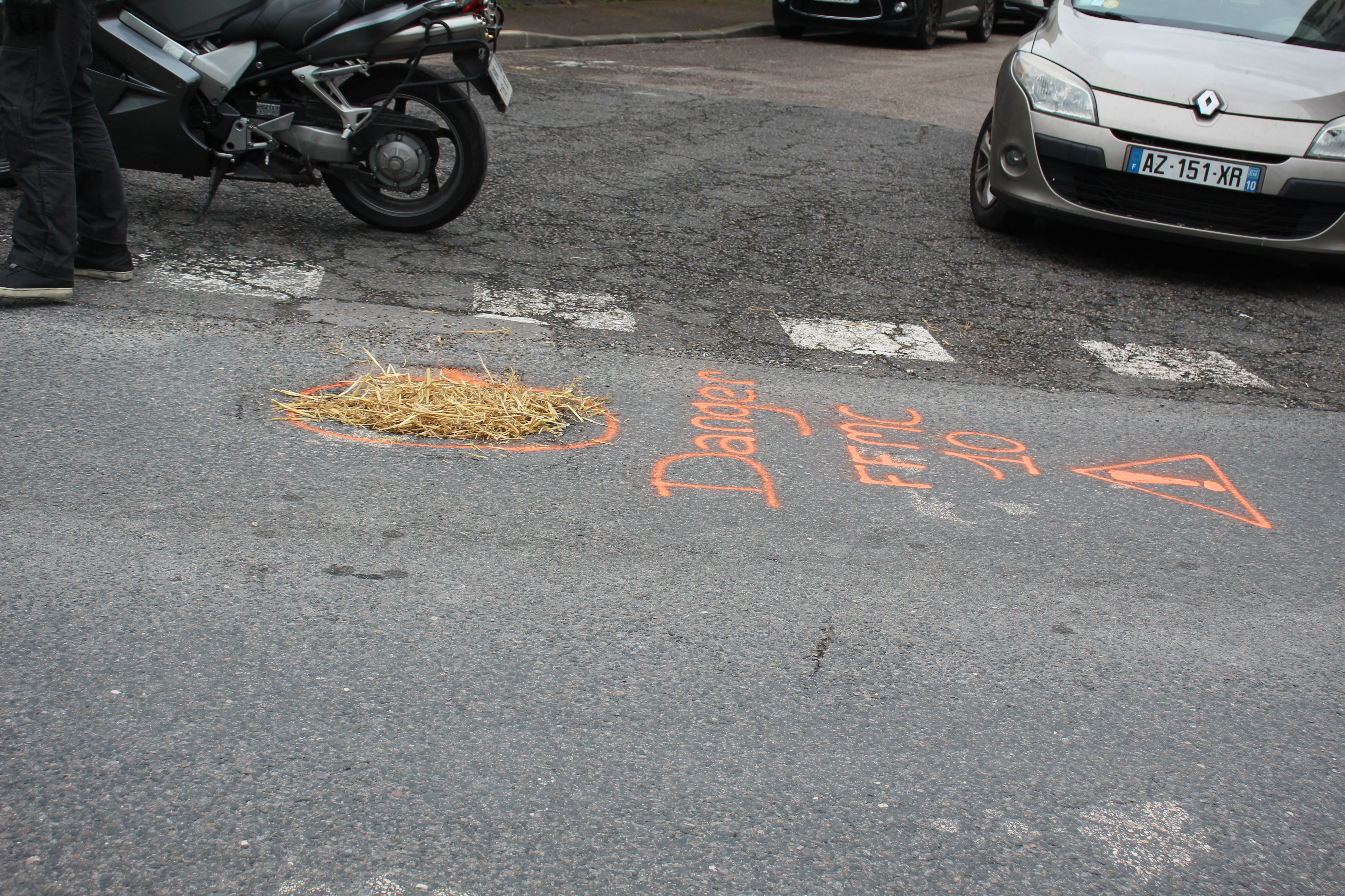 Manifestation pour dénoncer l'état des routes.De la paille dans les nids à l'occasion de Pâques