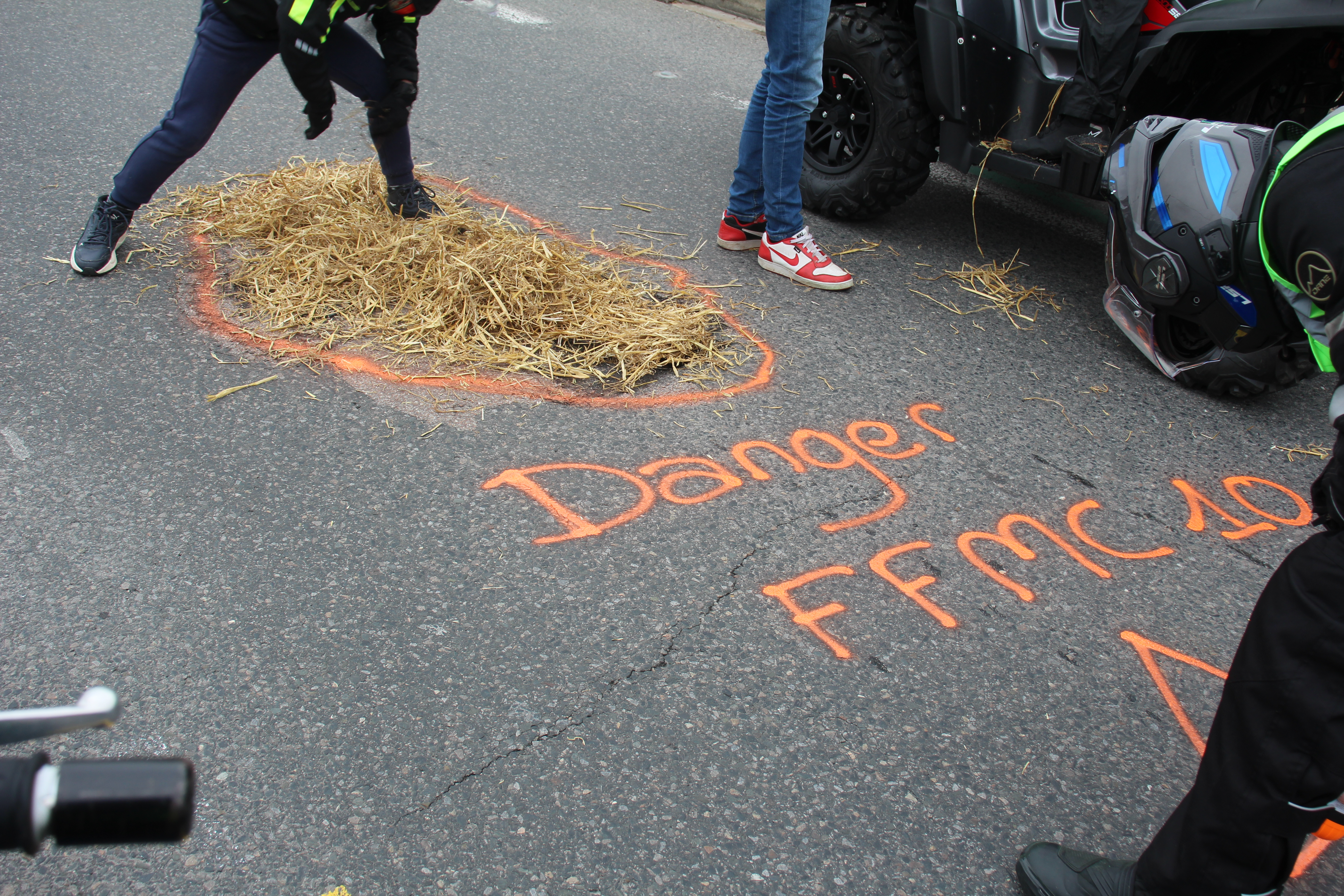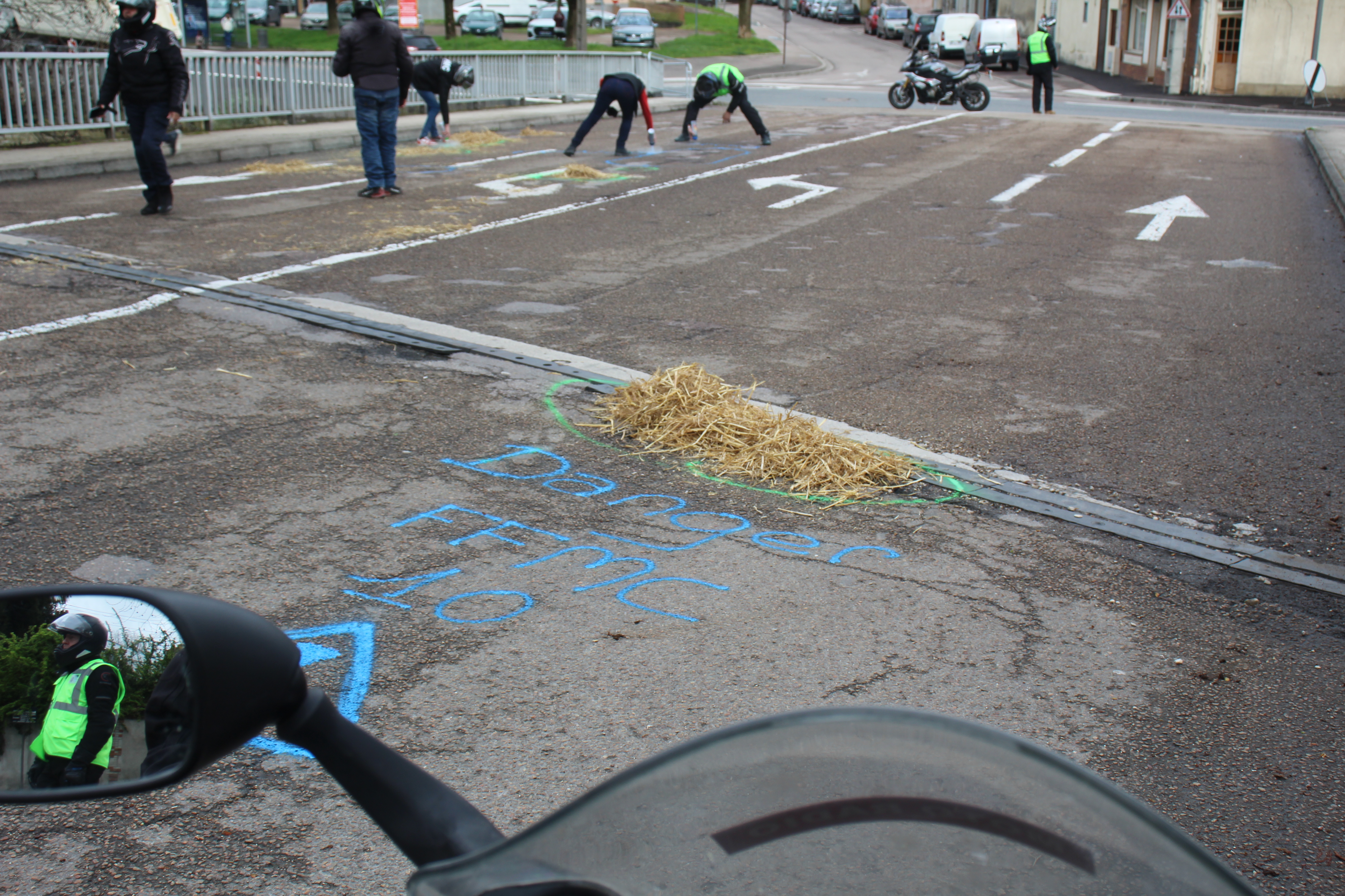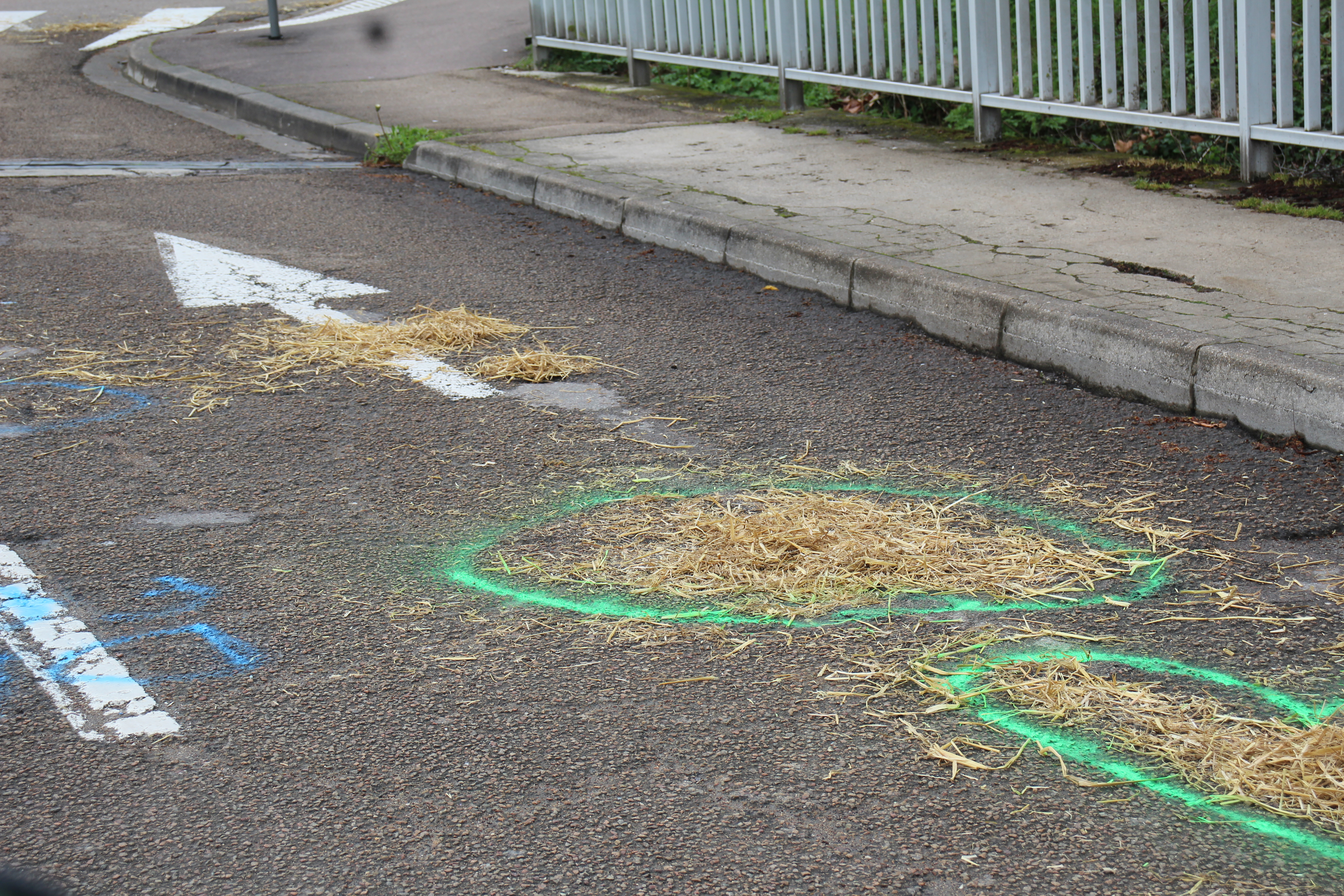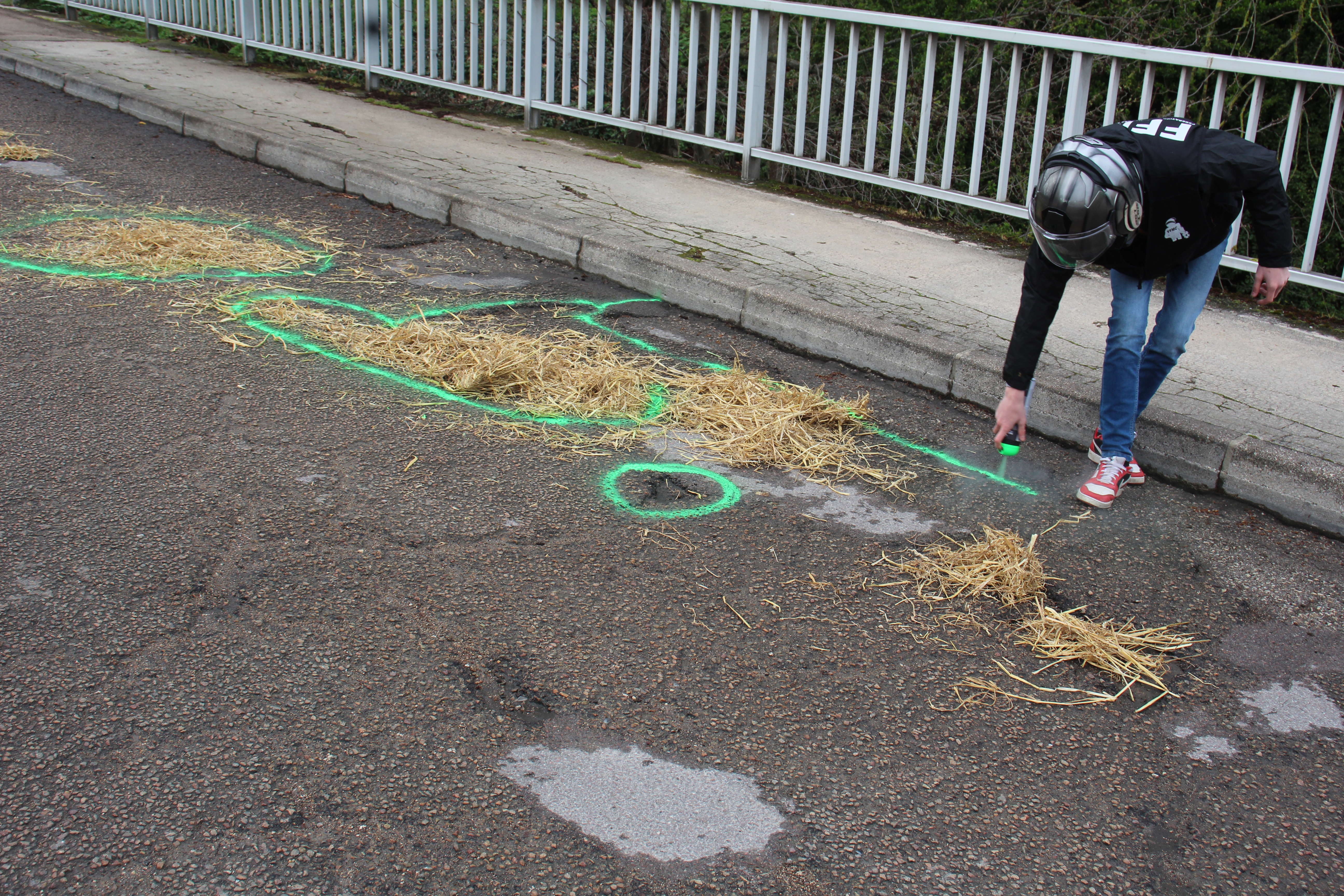 Manifestation pour dénoncer l'état des routes.De la paille dans les nids à l'occasion de Pâques