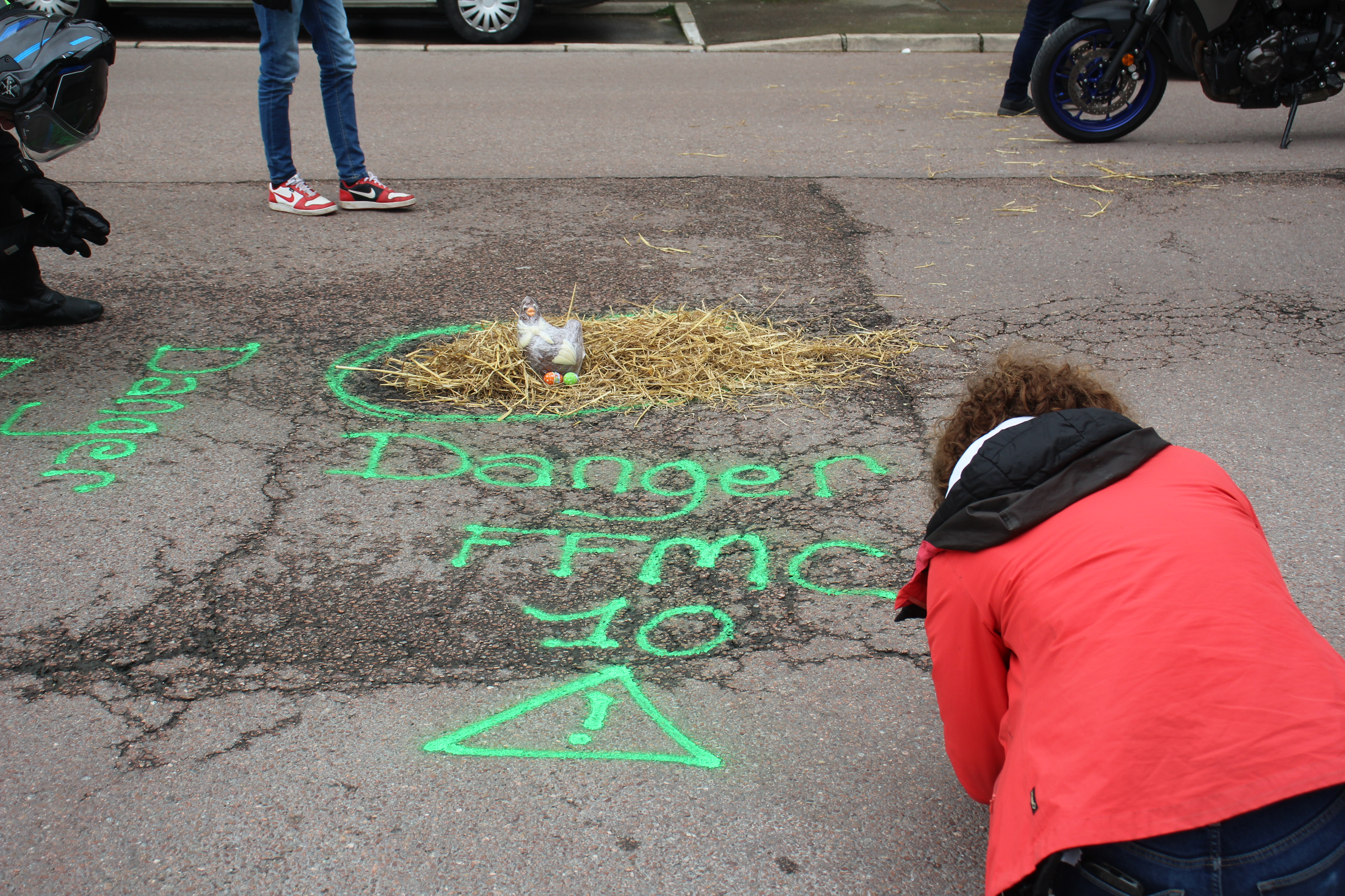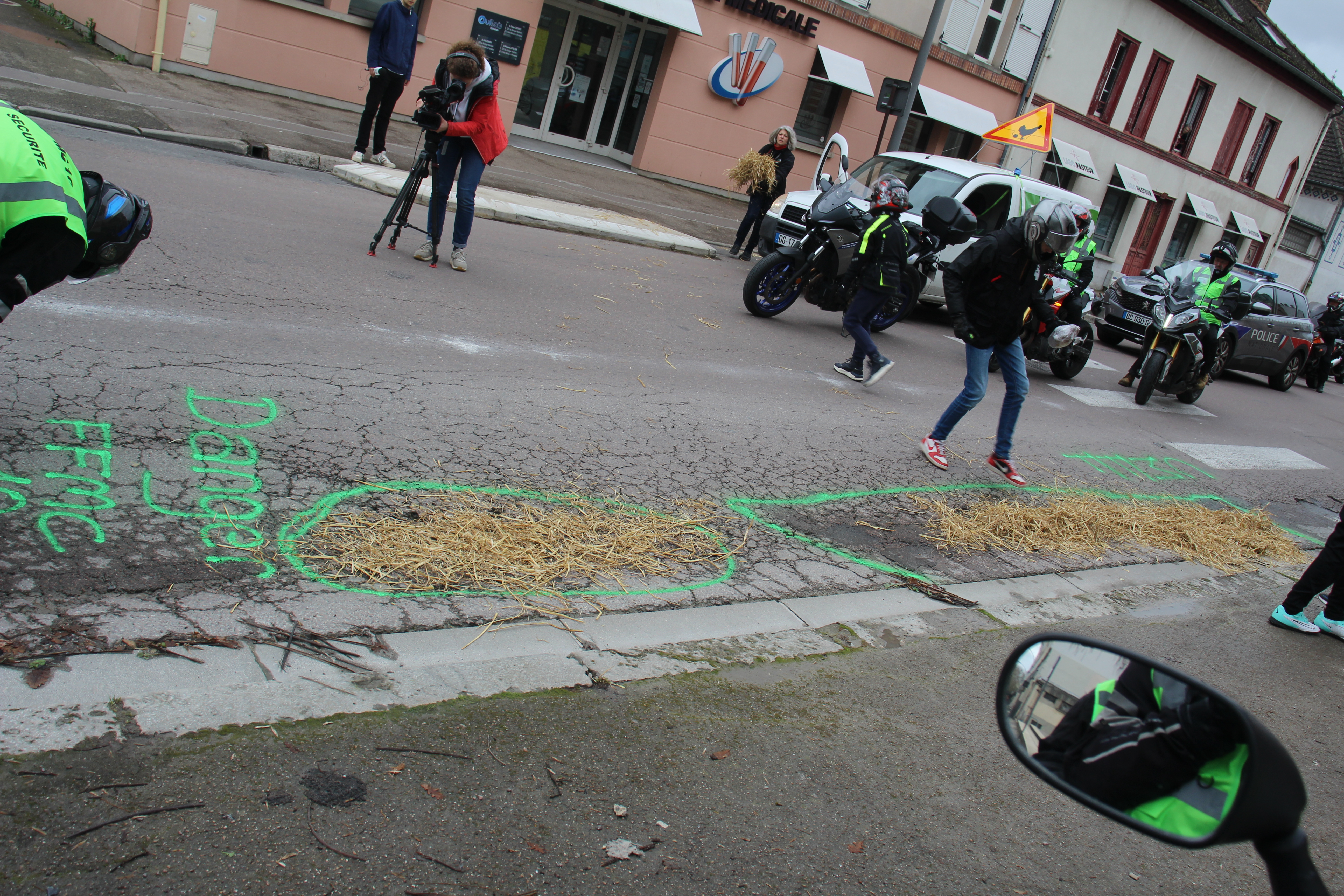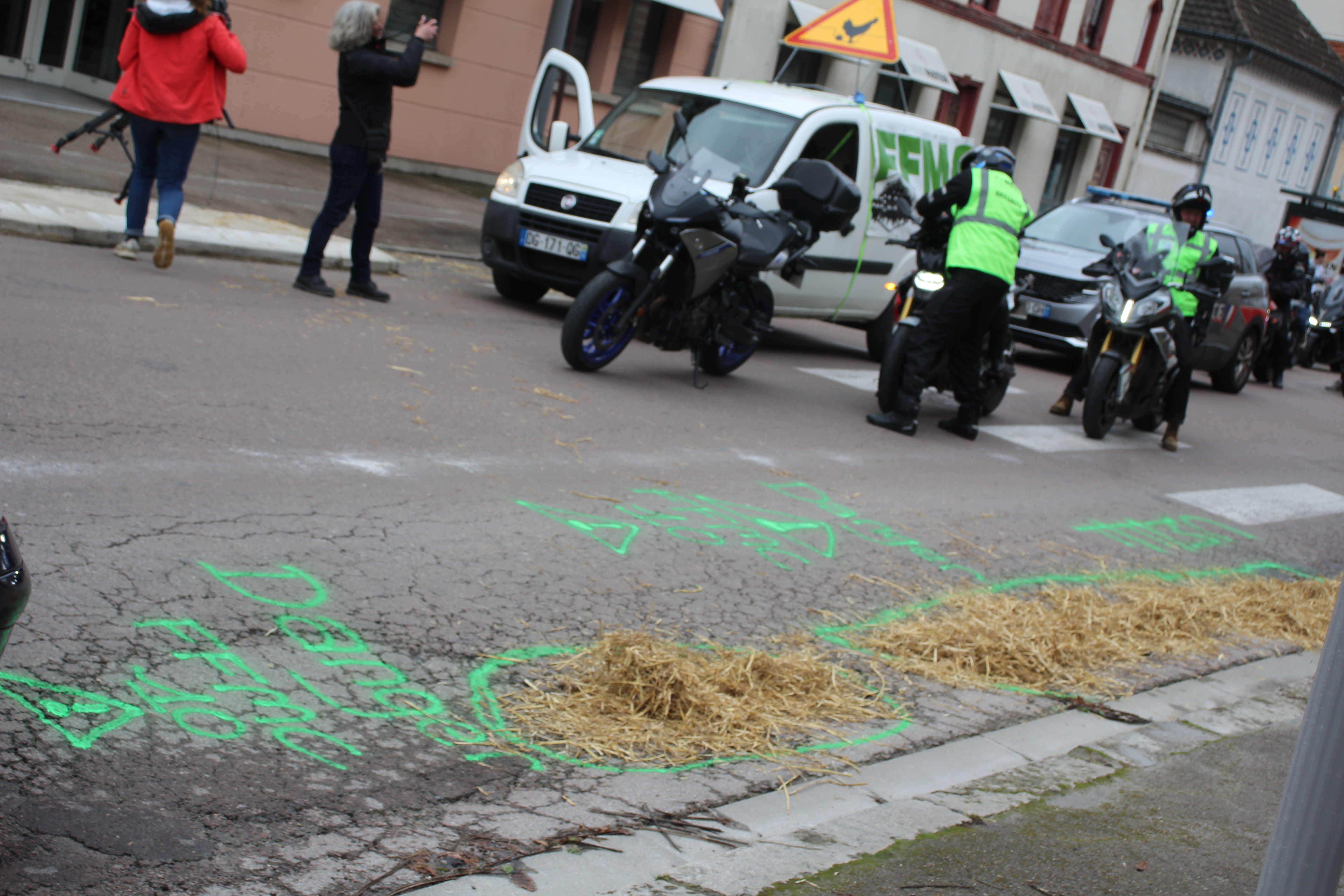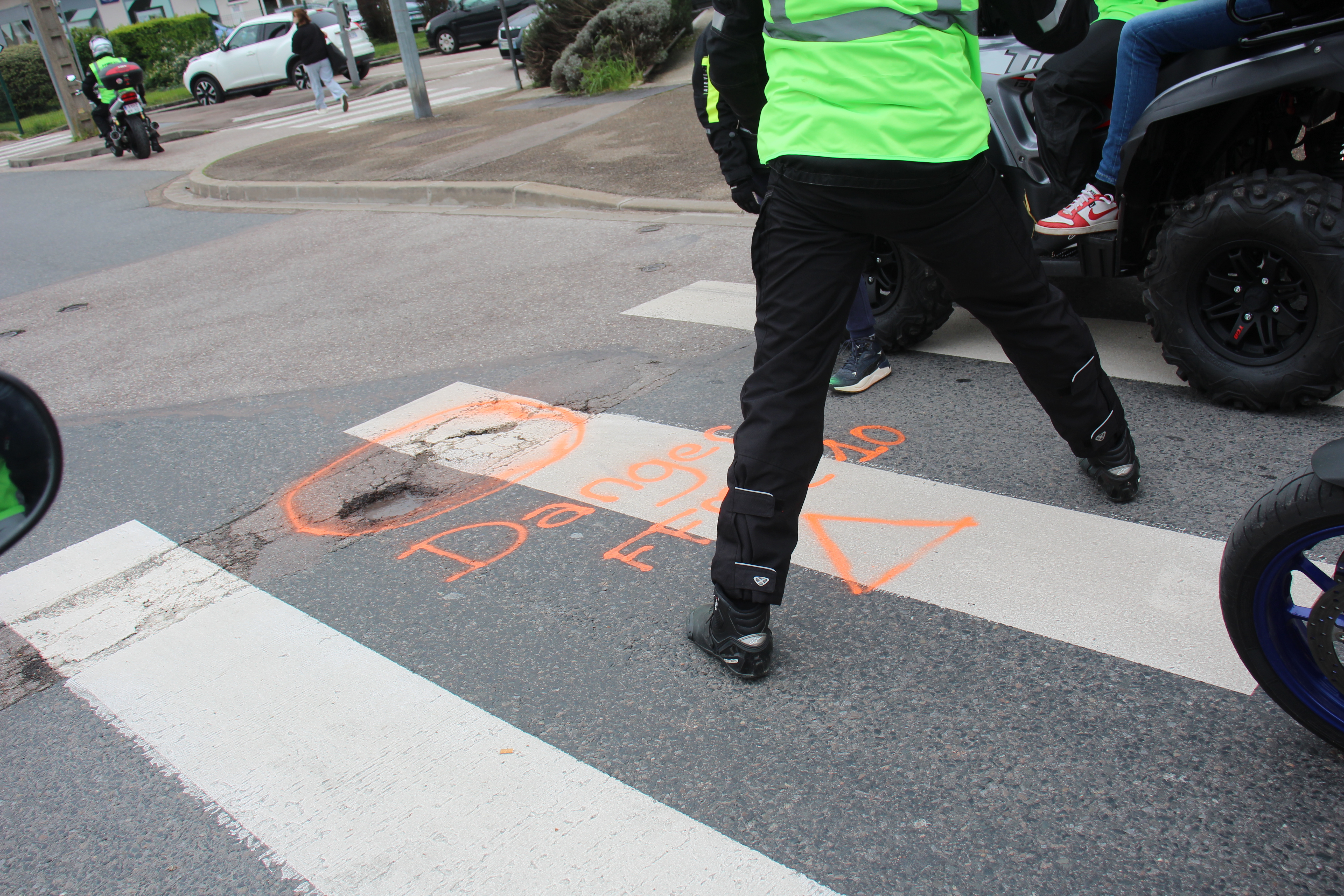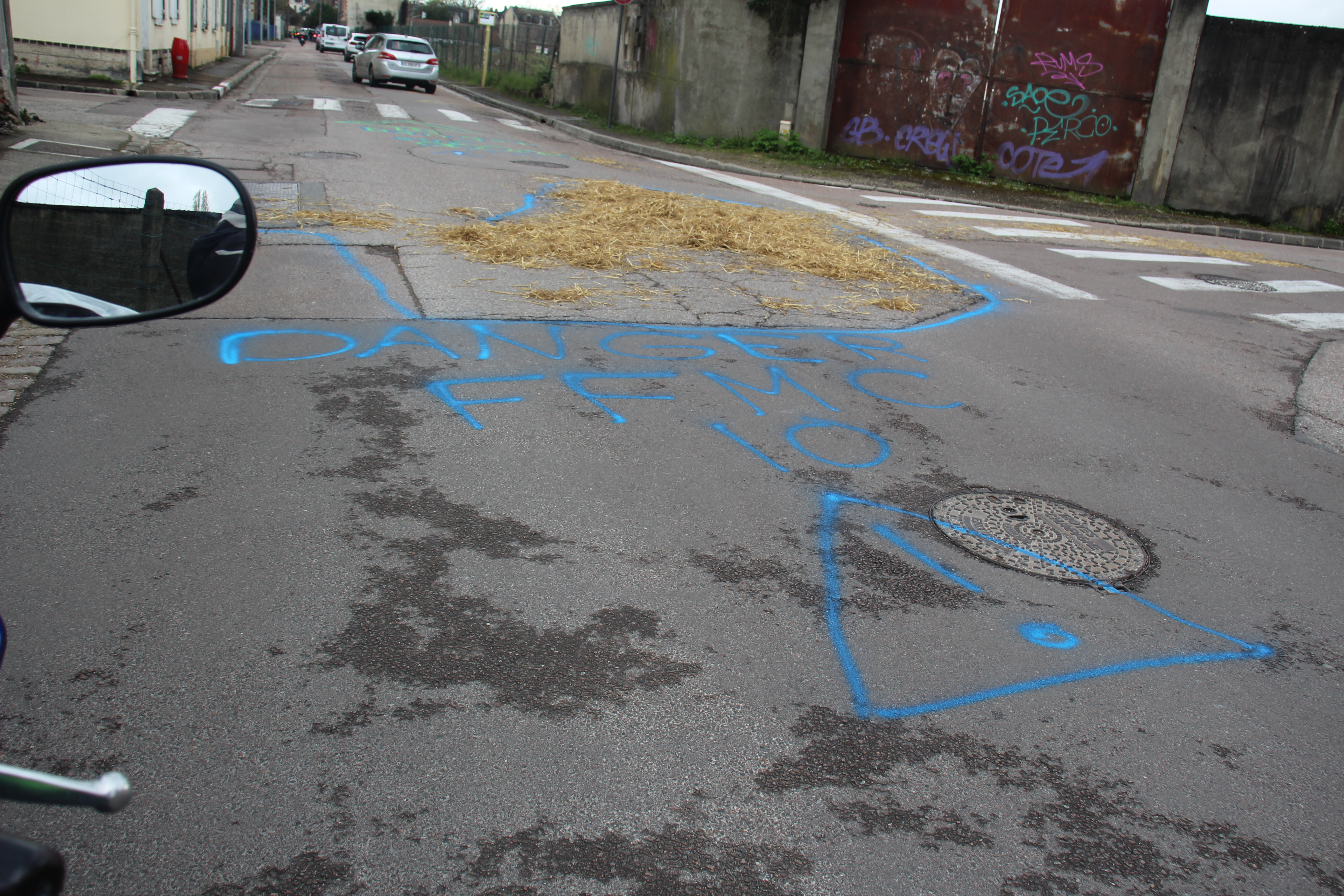 Manifestation pour dénoncer l'état des routes.De la paille dans les nids à l'occasion de Pâques