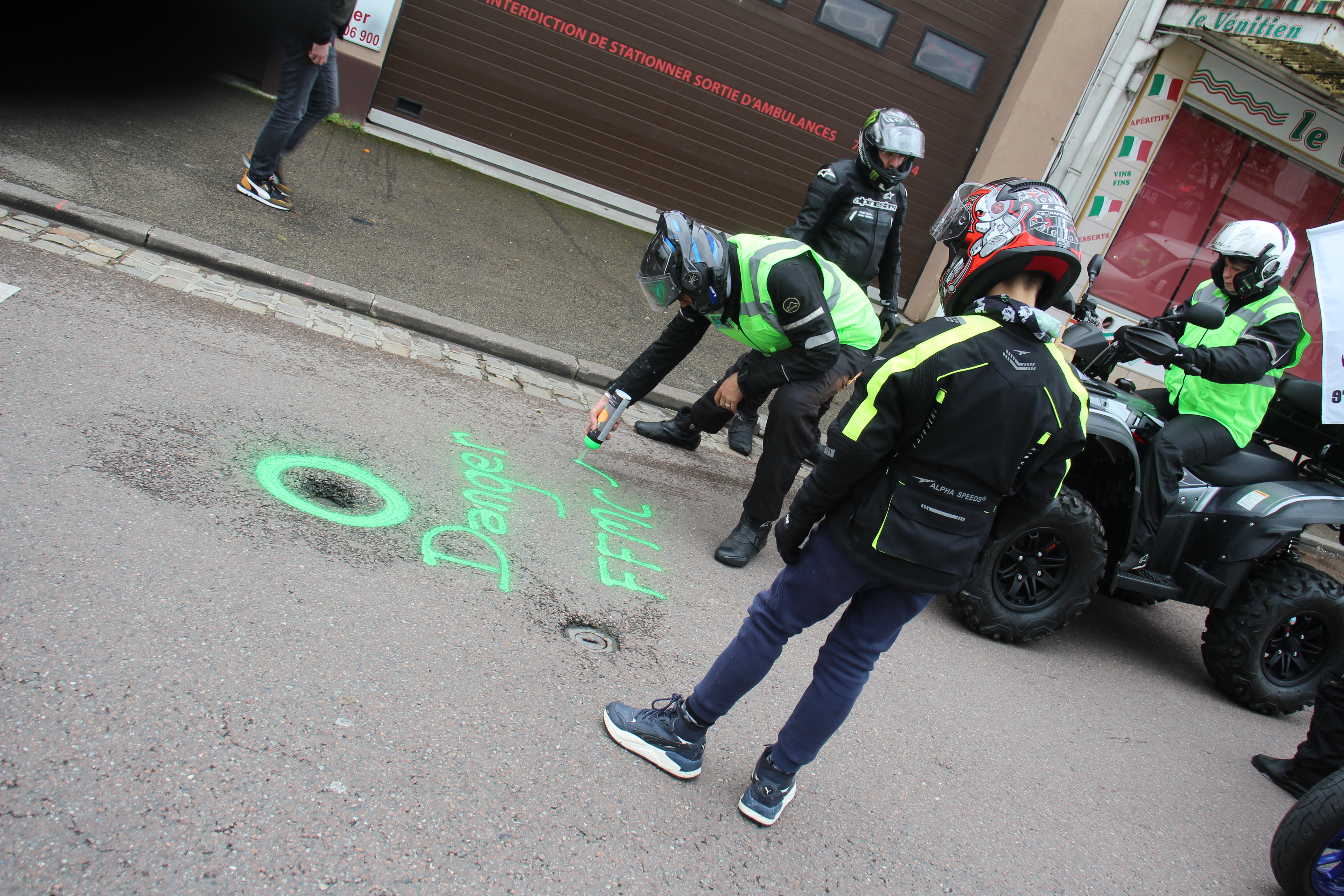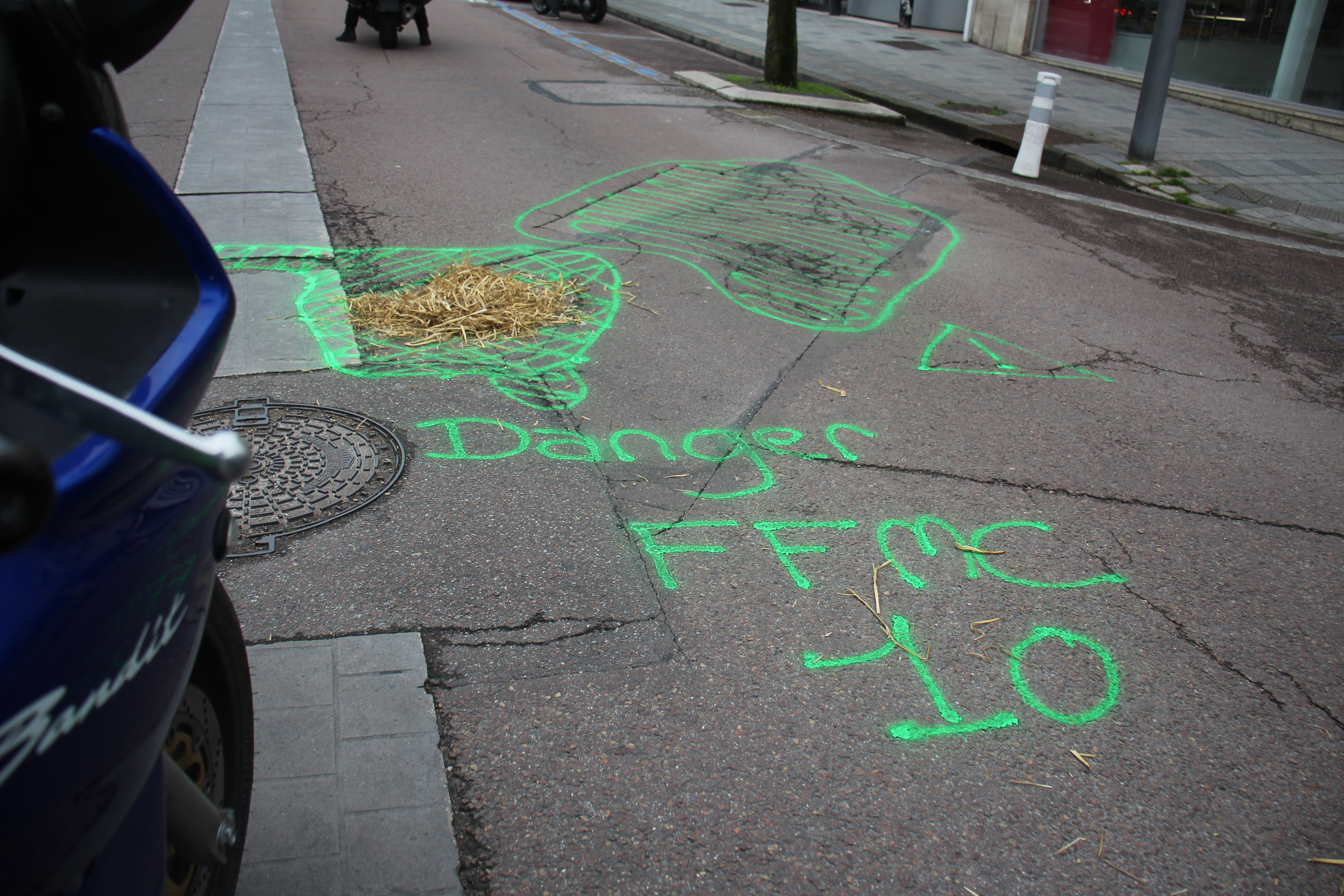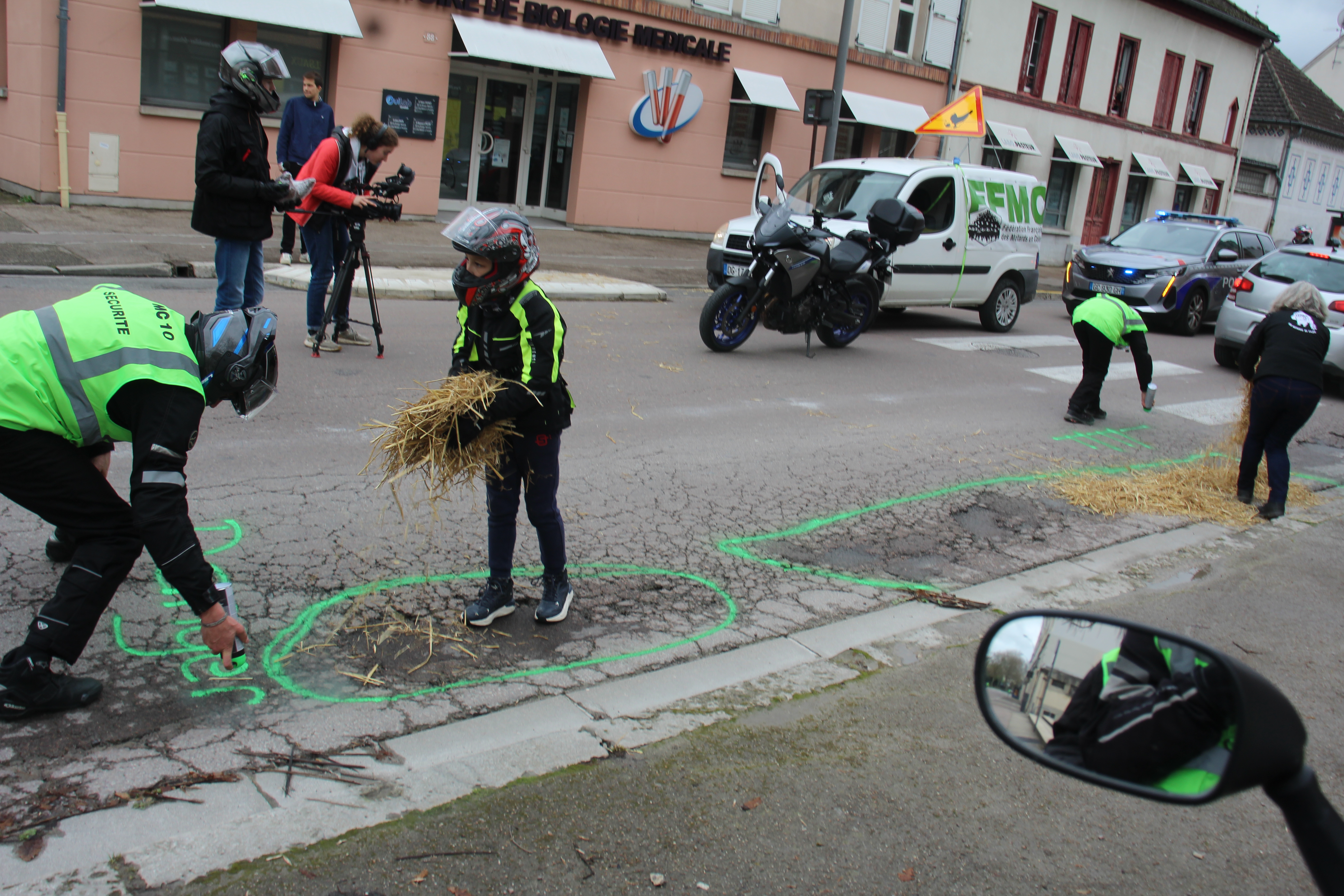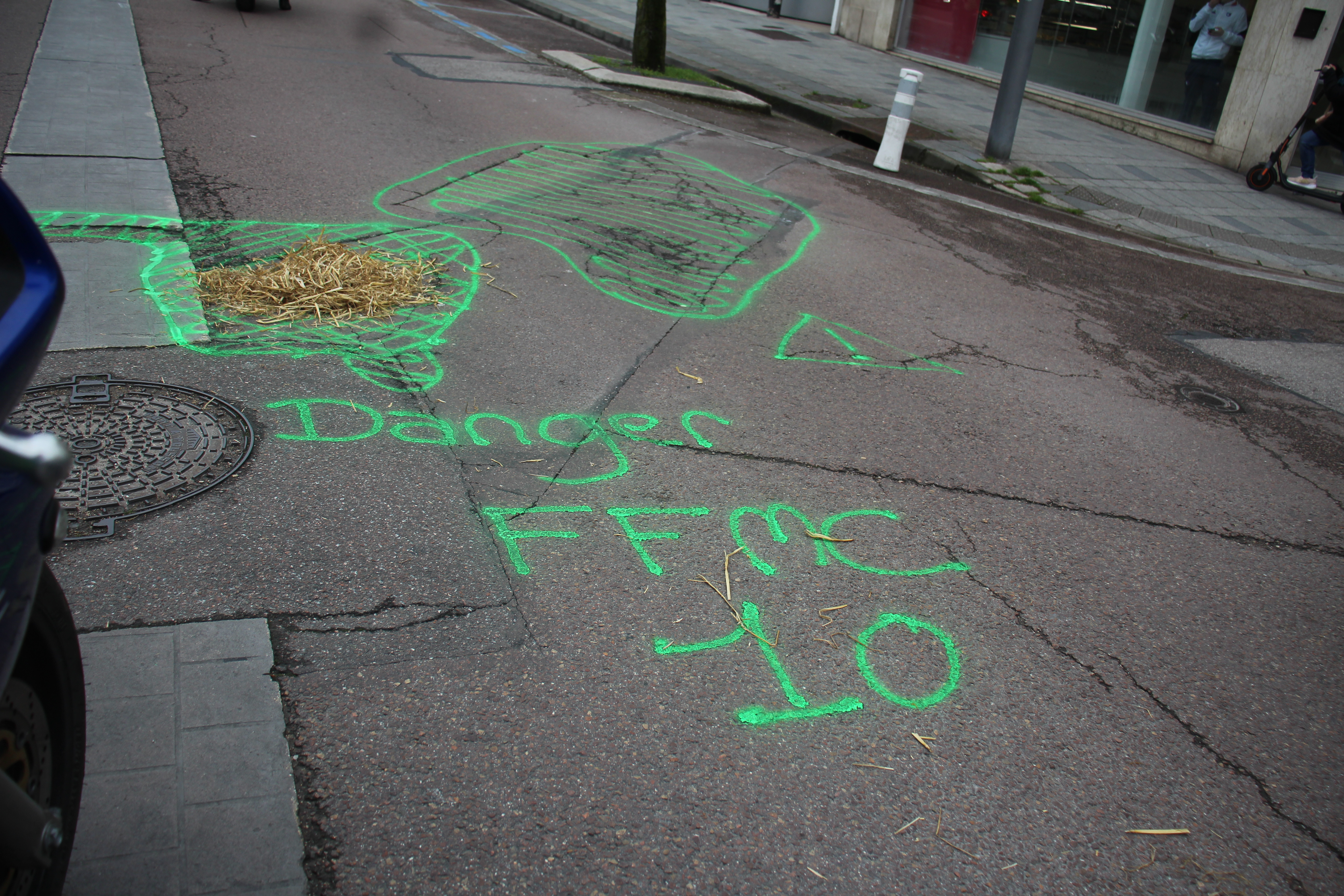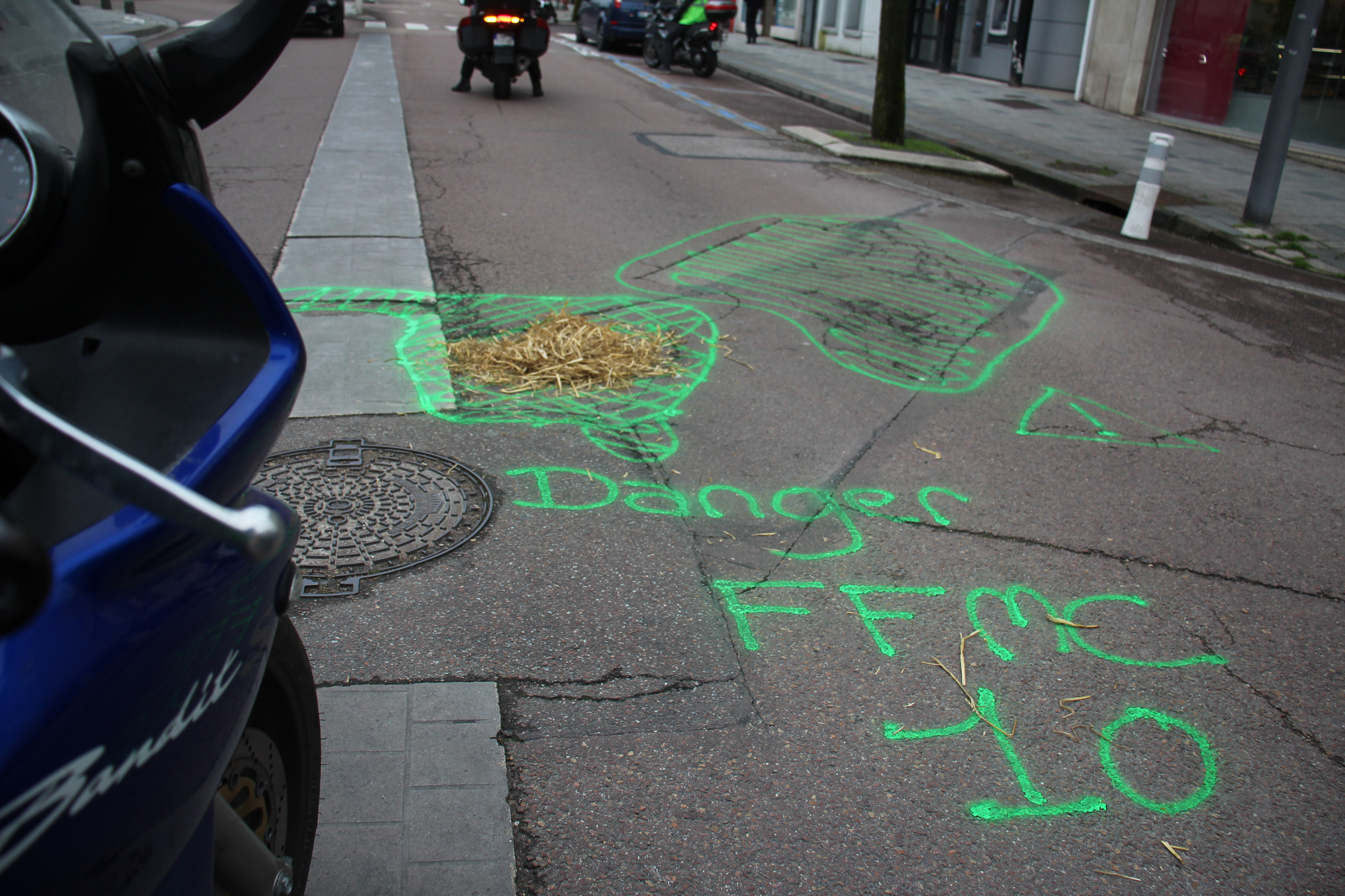 Manifestation pour dénoncer l'état des routes.De la paille dans les nids à l'occasion de Pâques