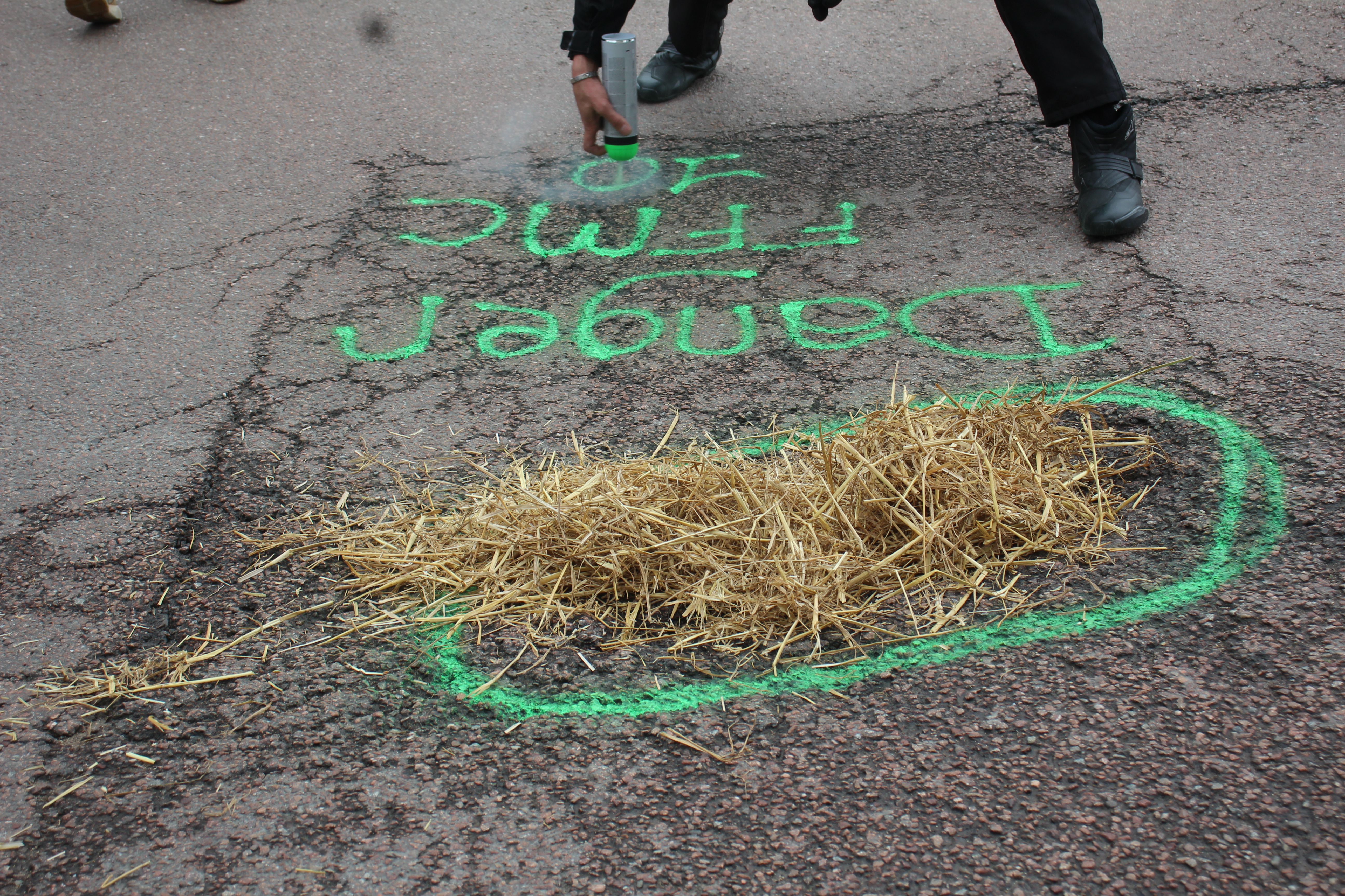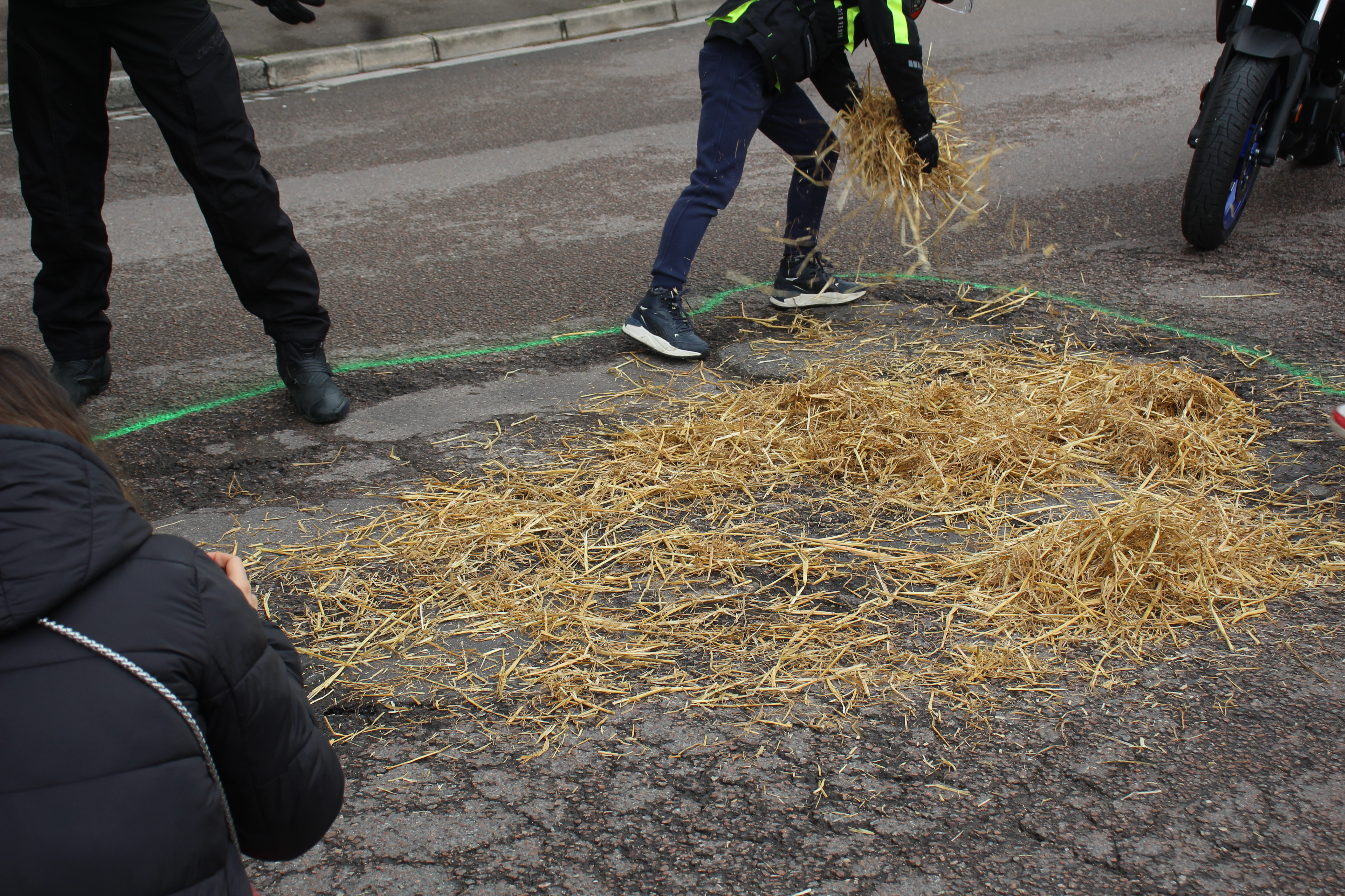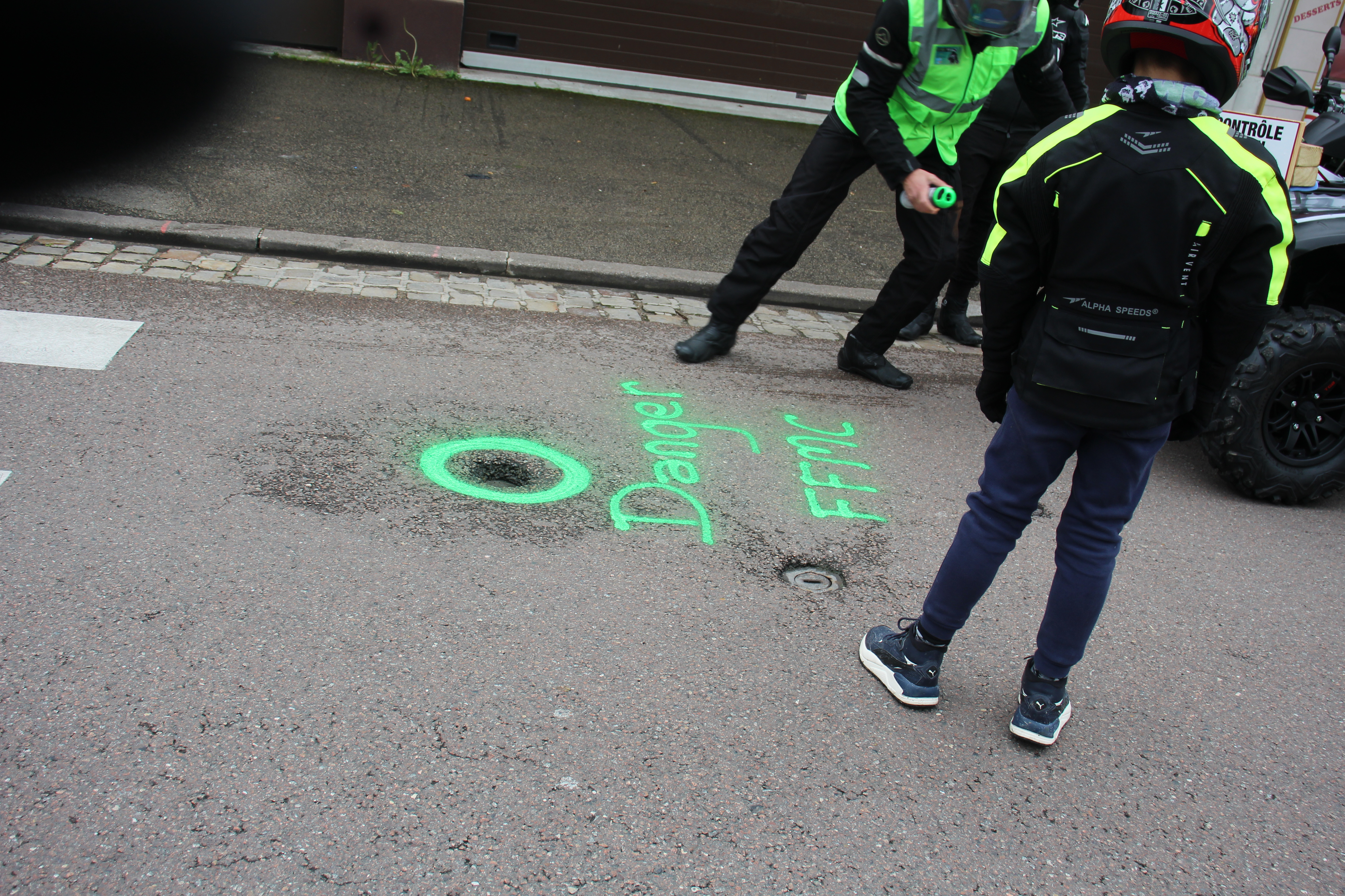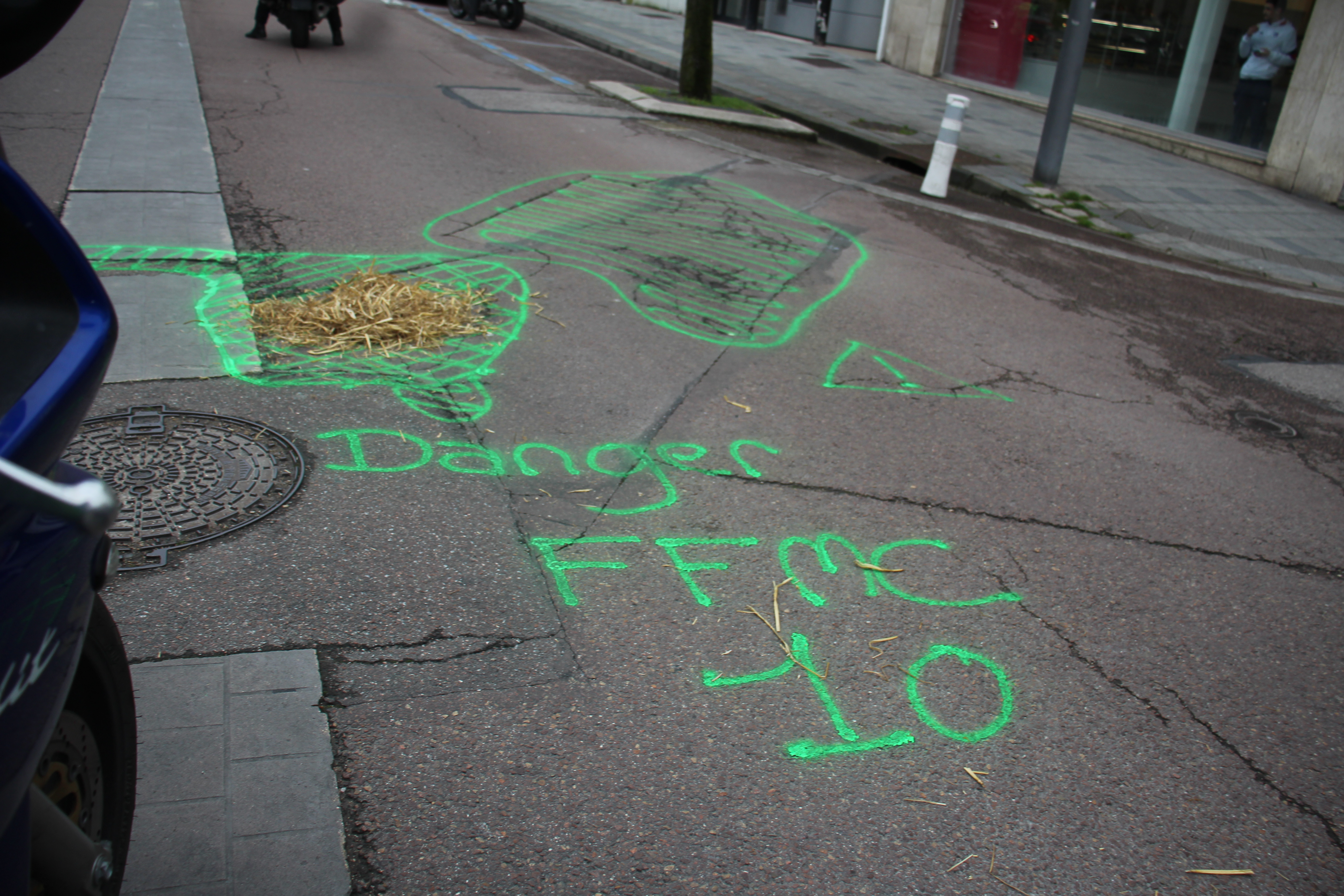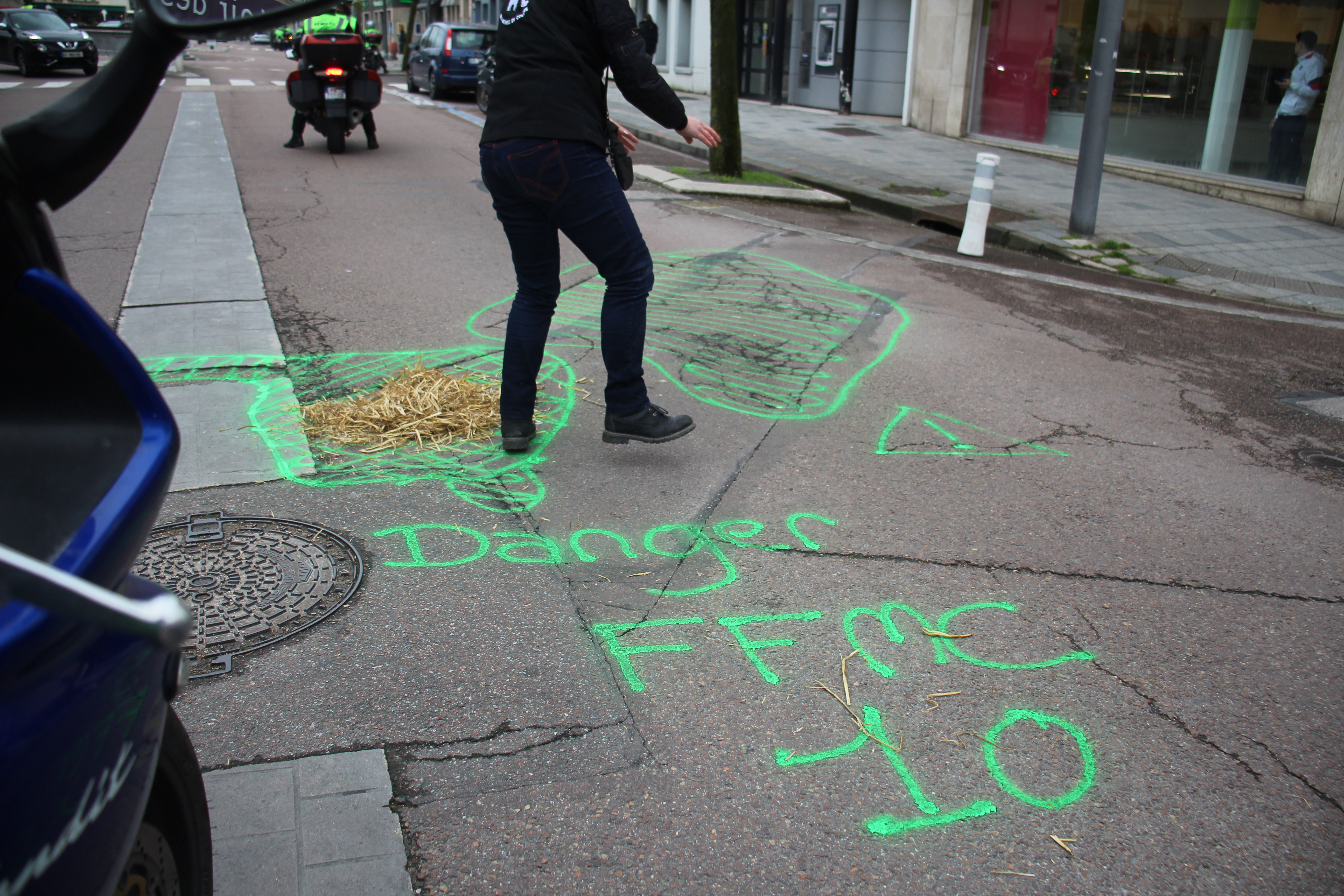 Manifestation pour dénoncer l'état des routes.De la paille dans les nids à l'occasion de Pâques