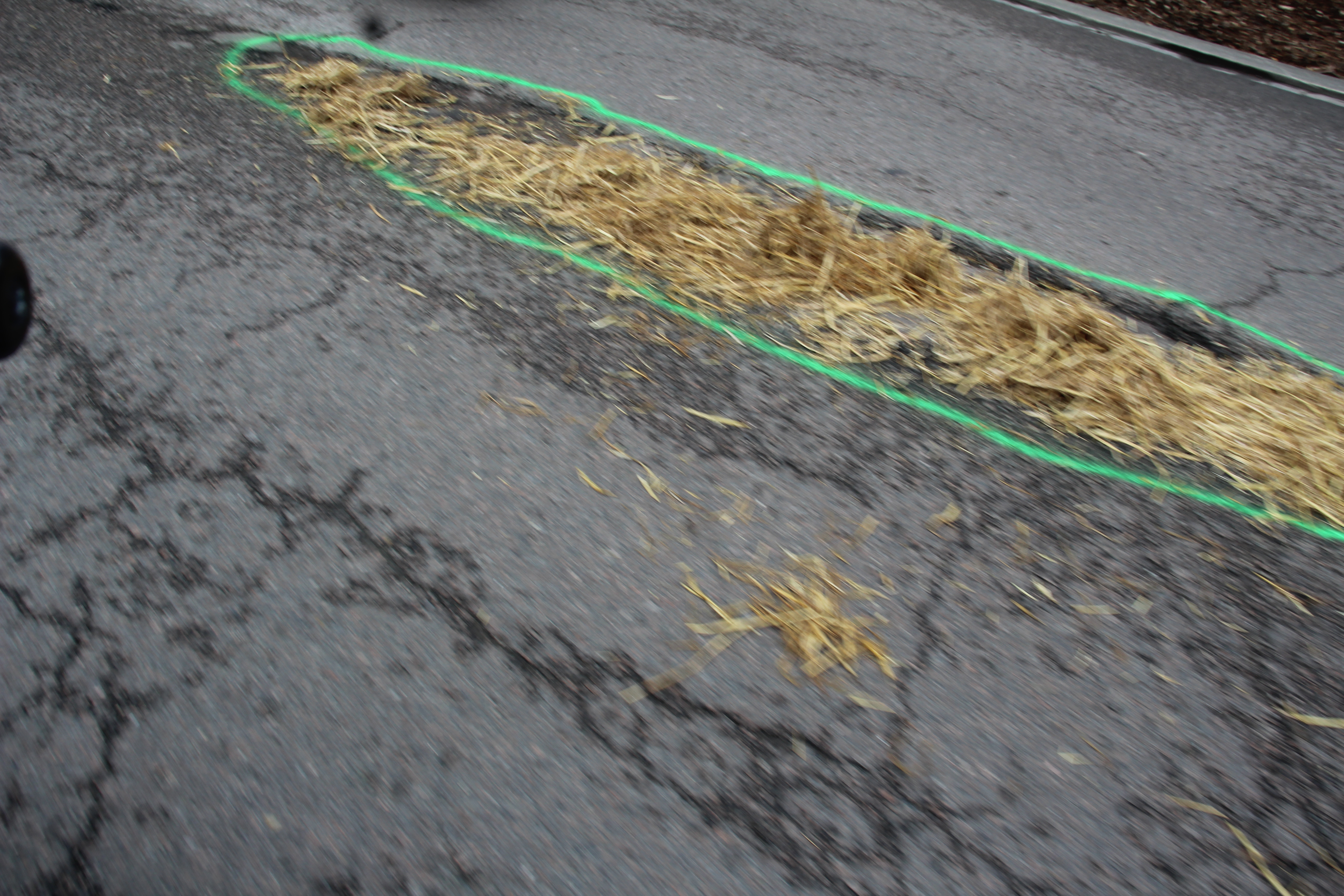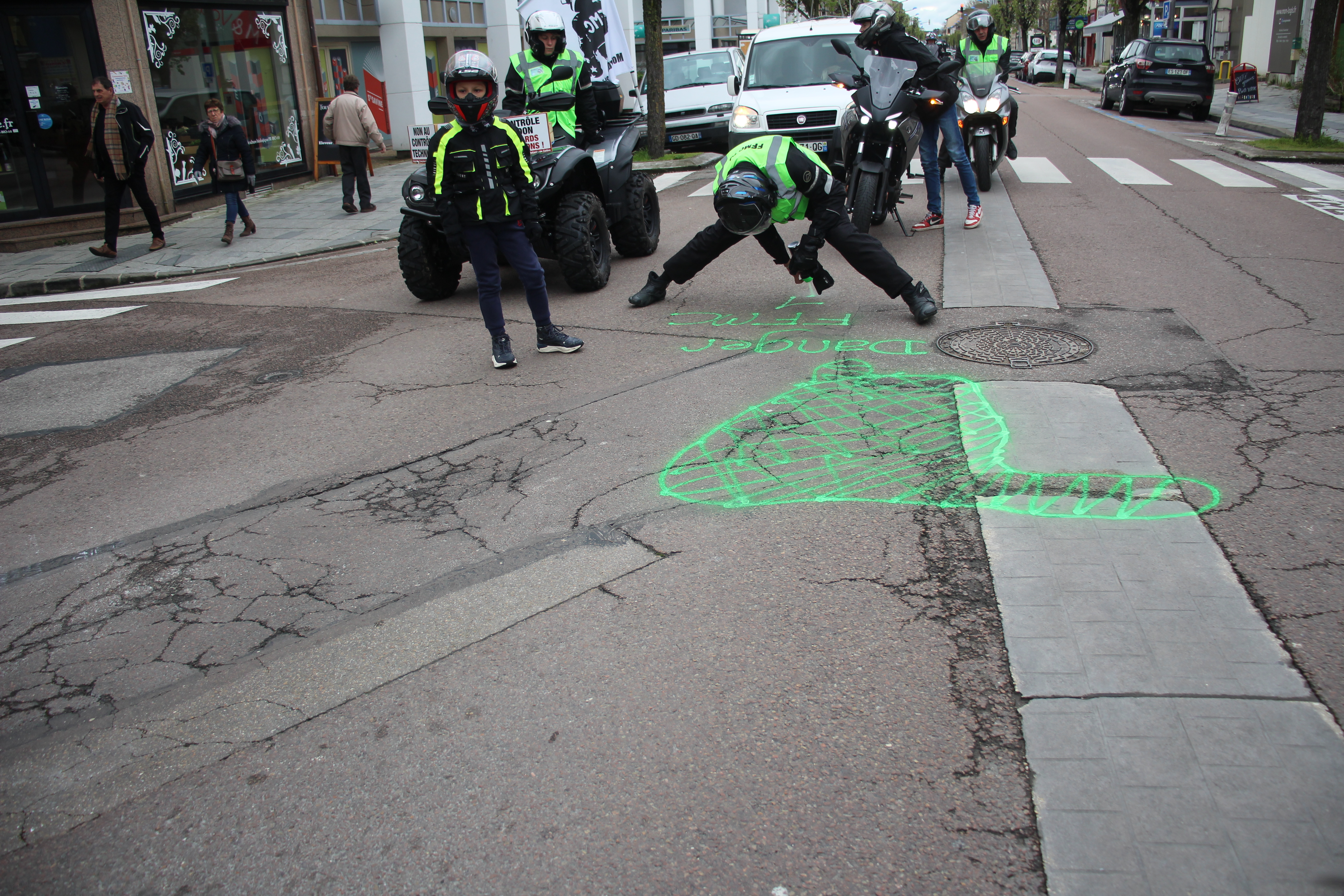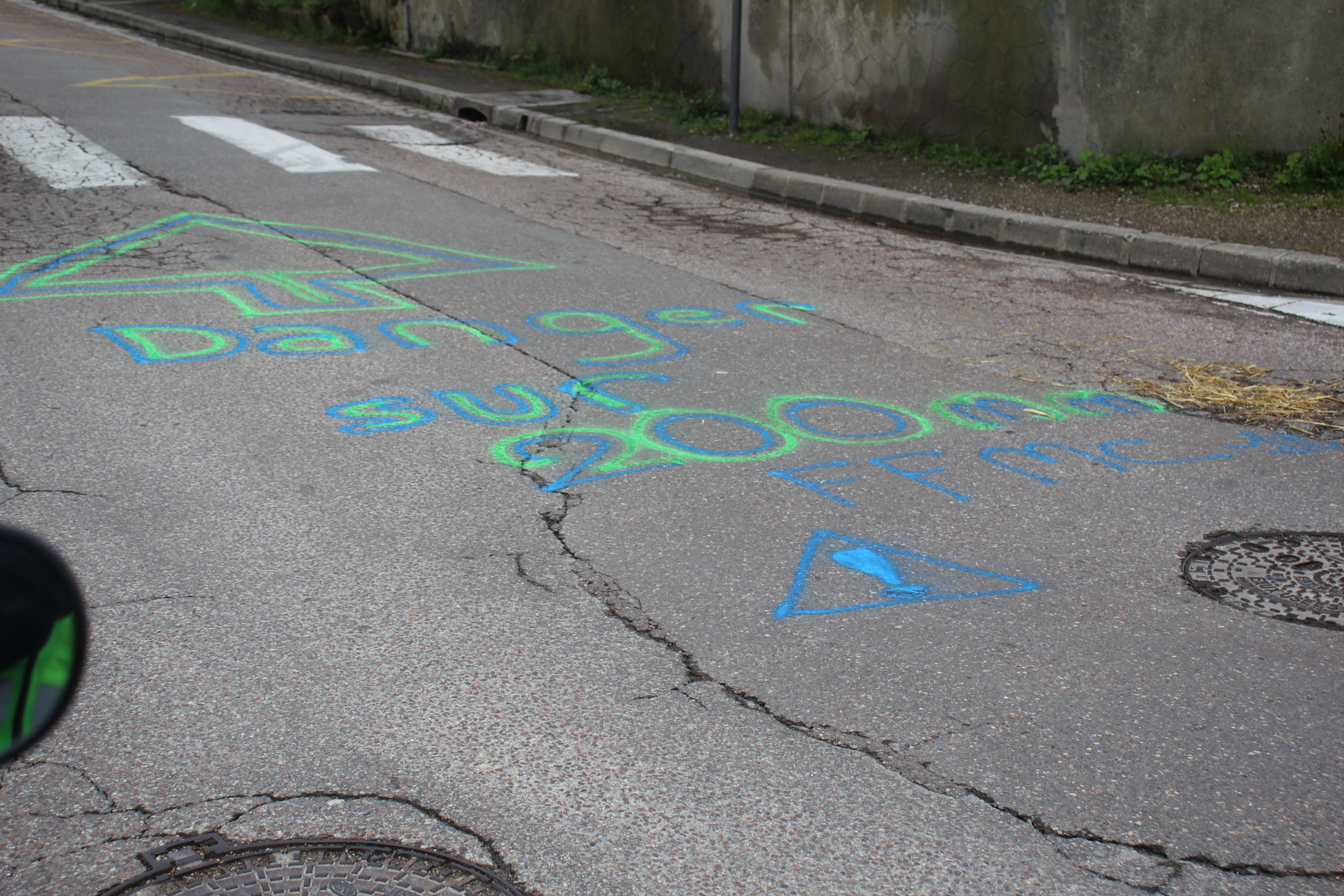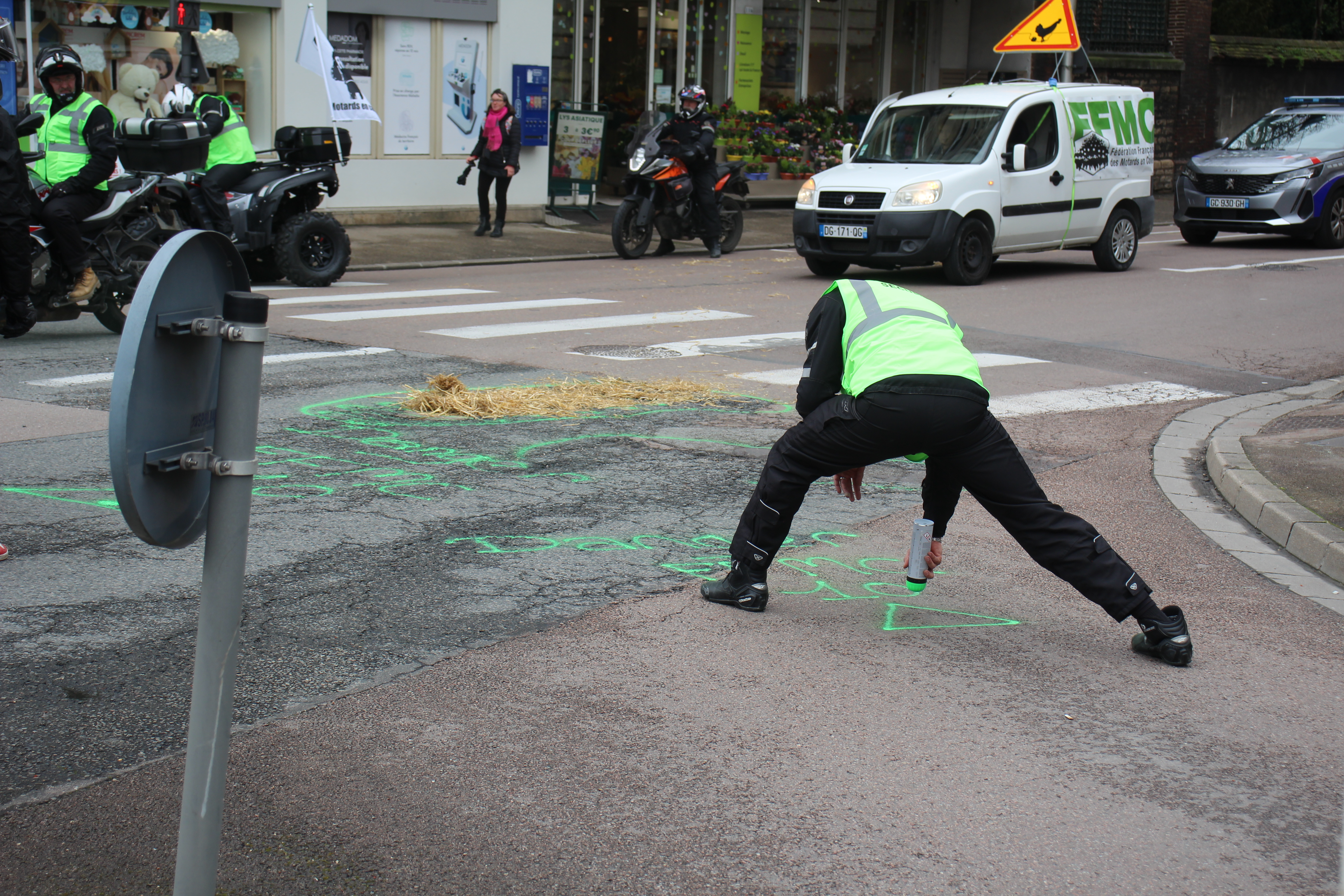 Manifestation pour dénoncer l'état des routes.De la paille dans les nids à l'occasion de Pâques
