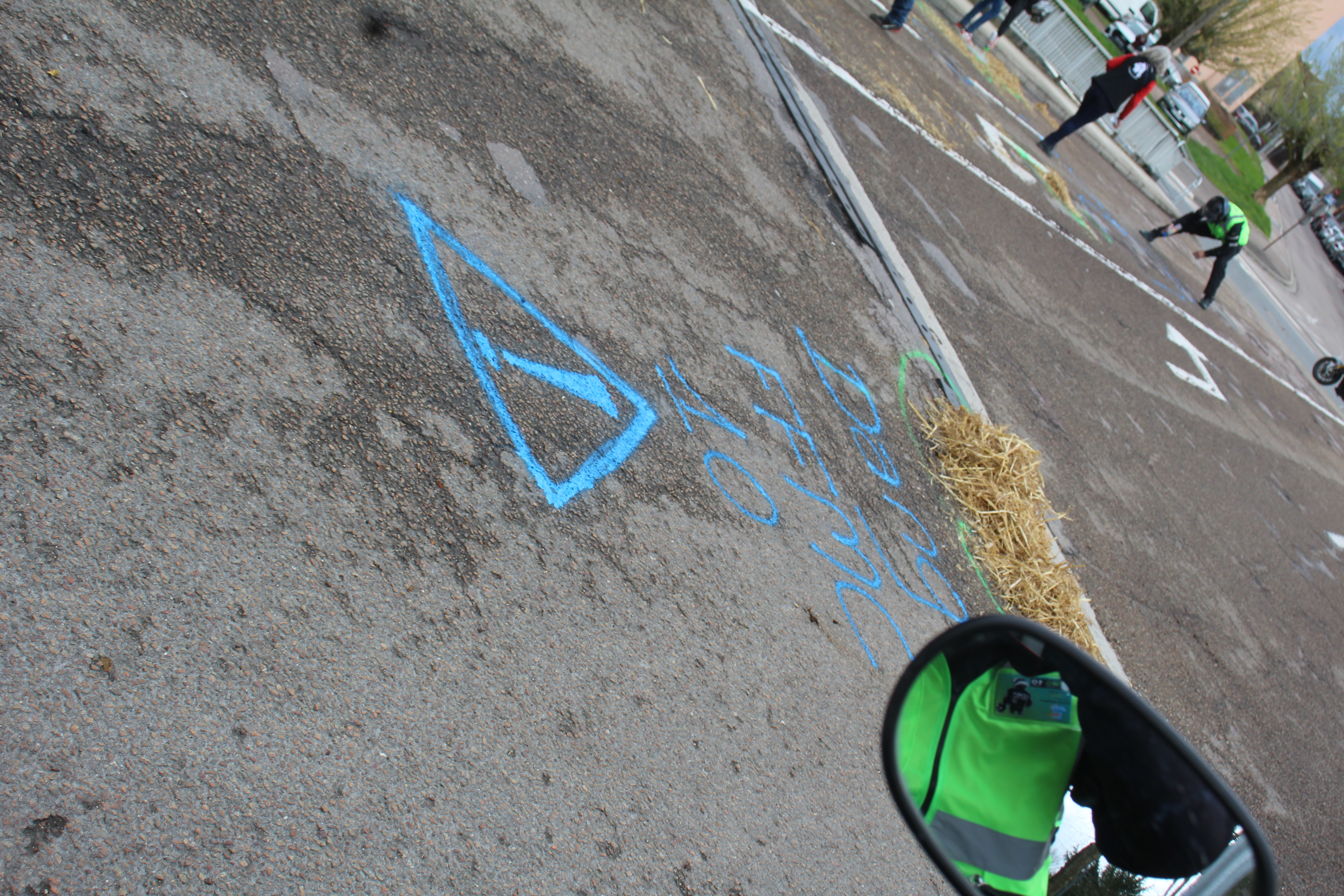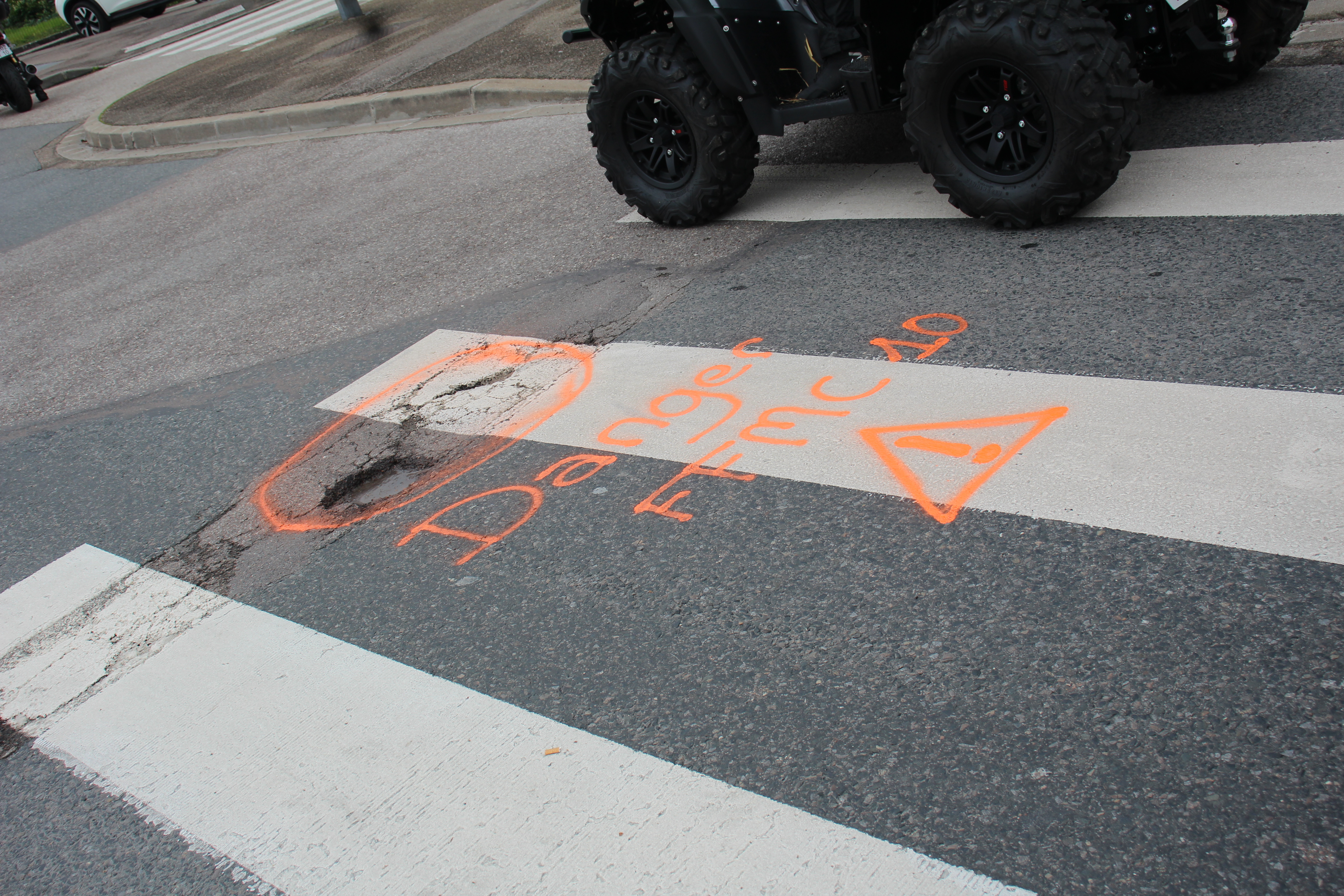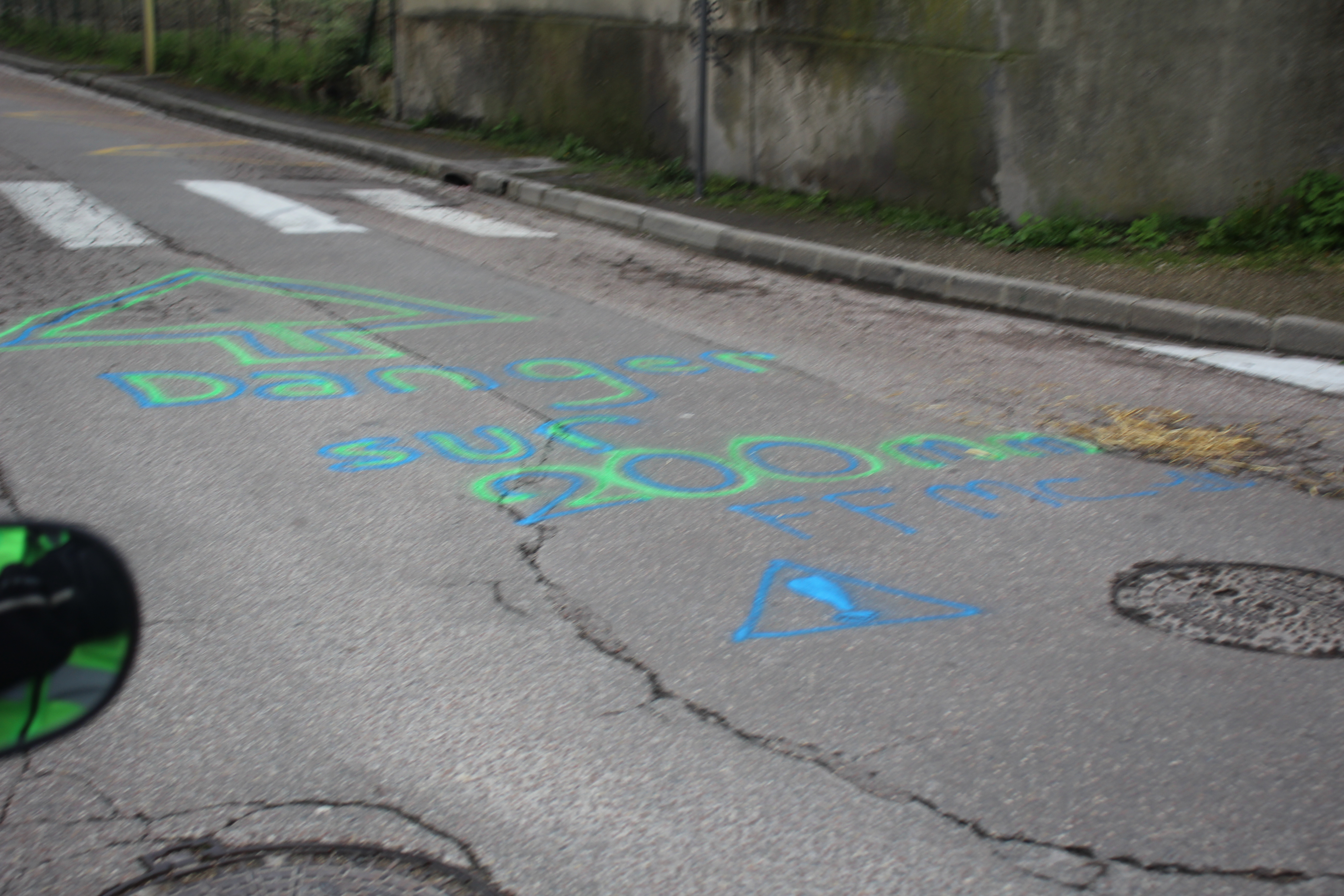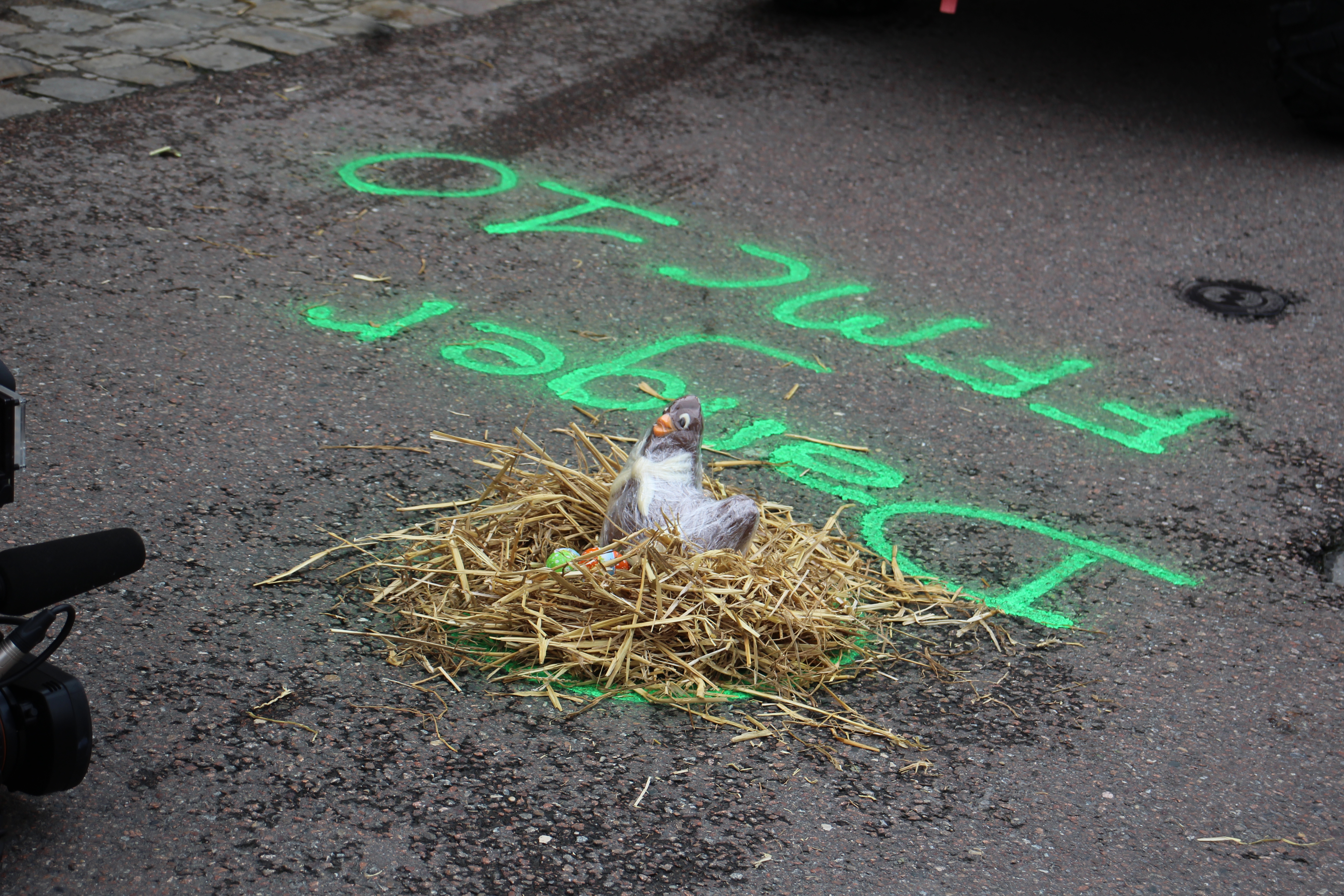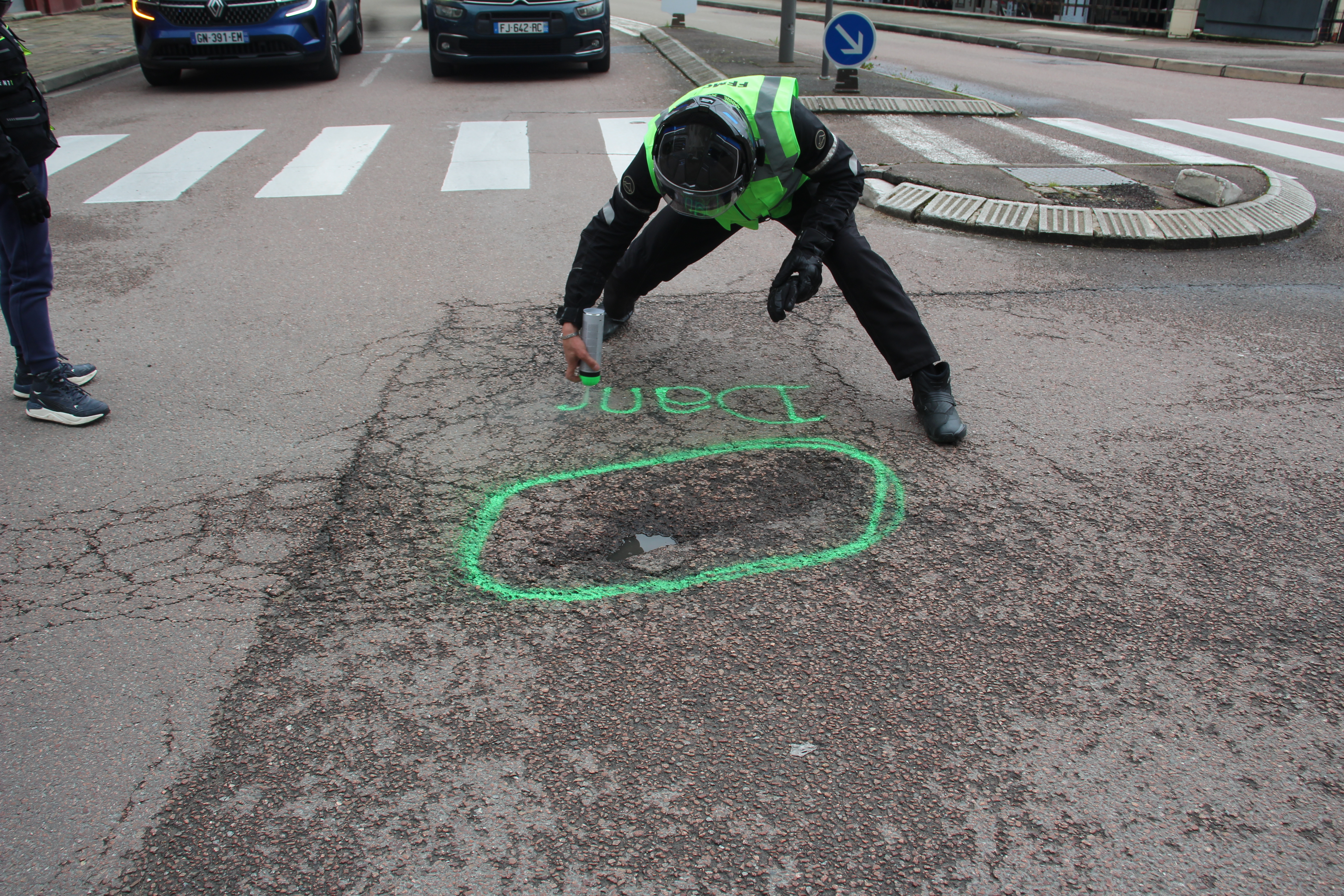Manifestation pour dénoncer l'état des routes.De la paille dans les nids à l'occasion de Pâques